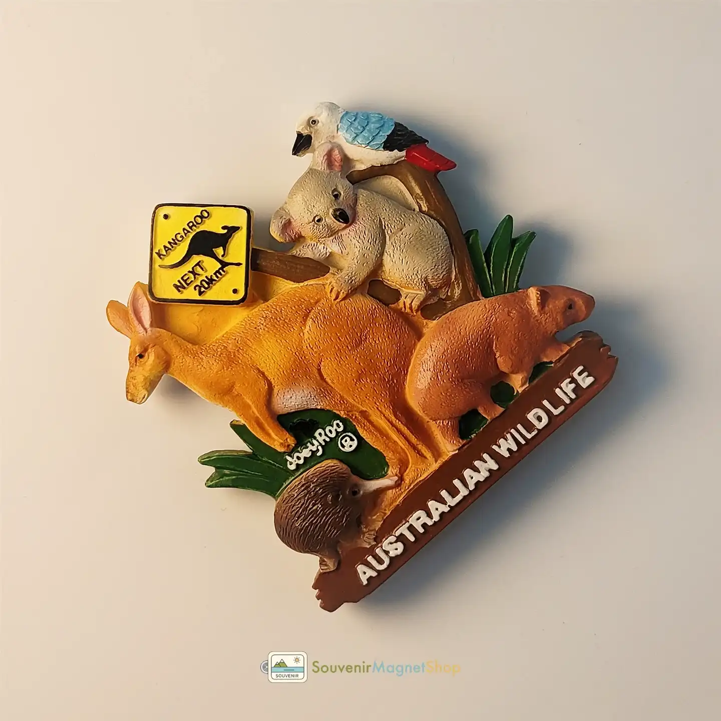 Explore Australia with this creative 3D wildlife fridge magnet! Features a vivid warning sign, kangaroo, koala, echidna, and wombat. Perfect souvenir.