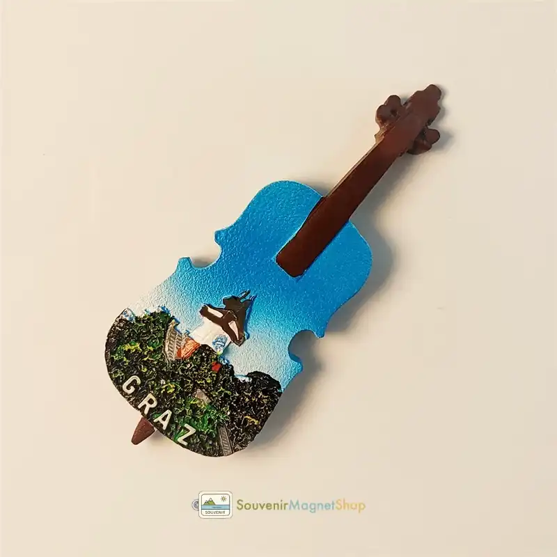 This unique fridge magnet beautifully captures the essence of Graz in a creative 3D violin shape.