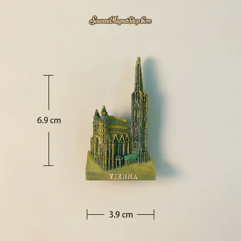 This finely crafted souvenir fridge magnet beautifully captures the intricate details and imposing presence of St. Stephen’s Cathedral. Each architectural nuance, from the soaring spire to the delicate tracery, is rendered with care, making it a faithful miniature of the iconic landmark.