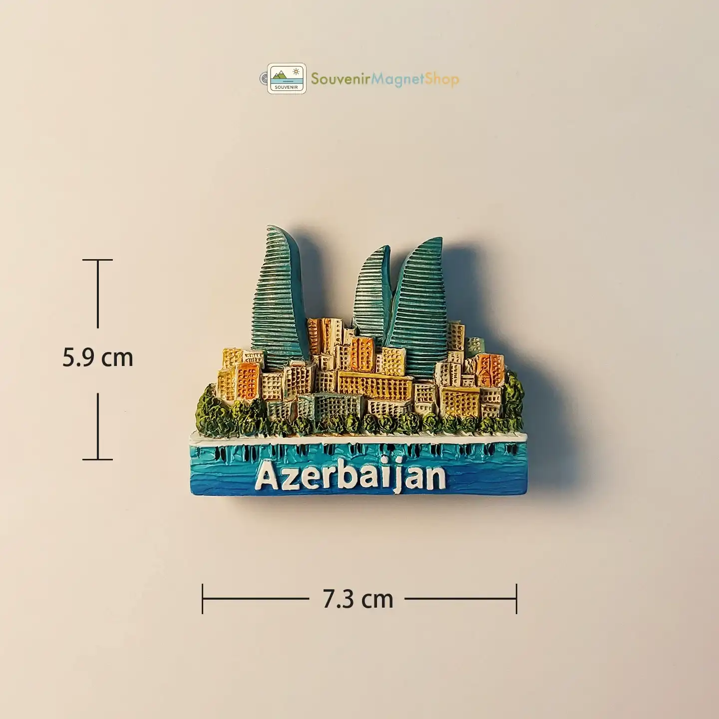 Capture Baku’s iconic Flame Towers and city skyline with this hand-painted 3D resin Souvenir Magnets, featuring “Azerbaijan” on the base. A stunning Baku Flame Towers fridge magnet.