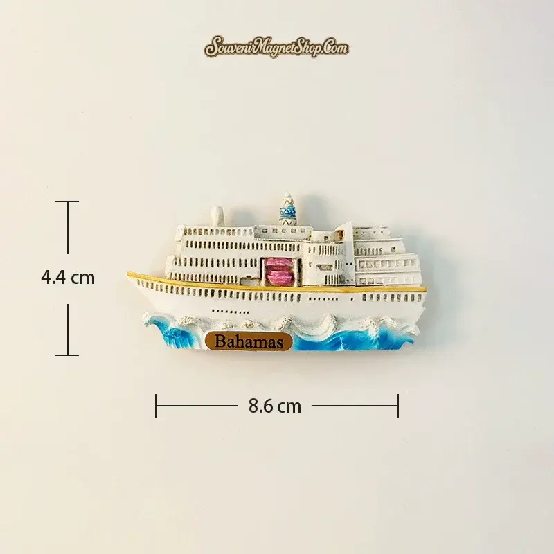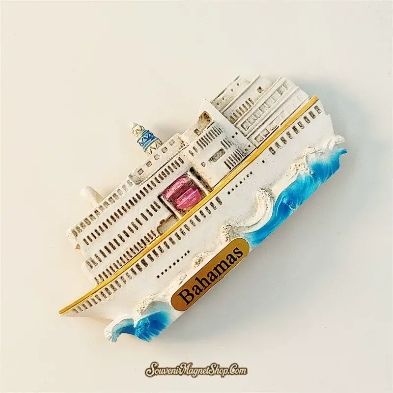Hand-Painted 3D Bahamas Cruise Ship Souvenir Magnet — Luxury Ocean Liner on Turquoise Waves