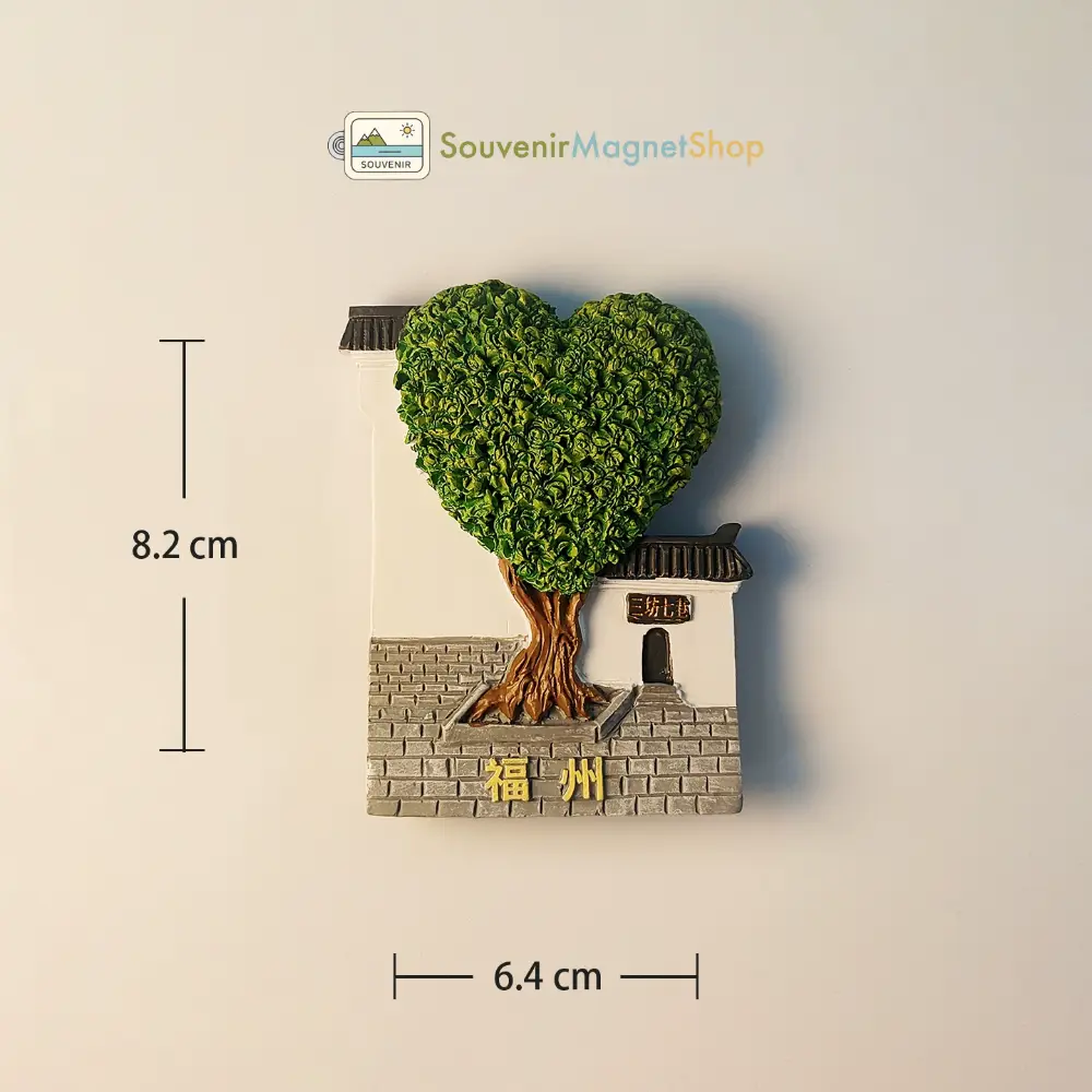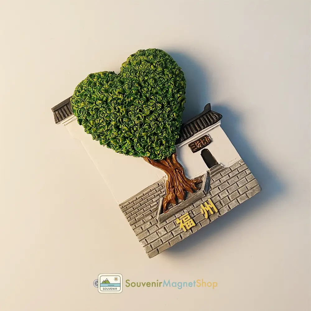 Capture the charm of Fuzhou’s historic Three Lanes and Seven Alleys with this unique fridge magnet. Features an iconic heart-shaped tree, a perfect China souvenir!