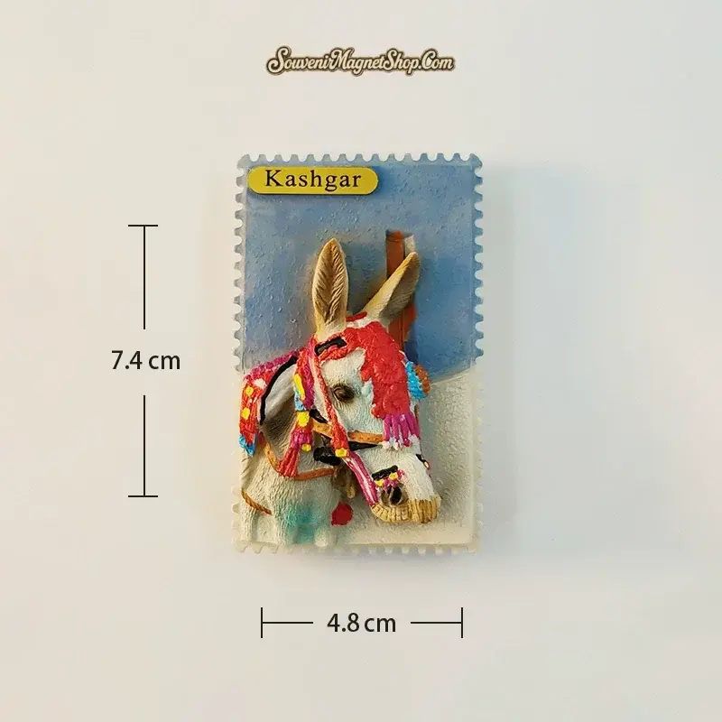 Postage Stamp 3D Donkey Magnet — Xinjiang Folk Craft in Miniature
