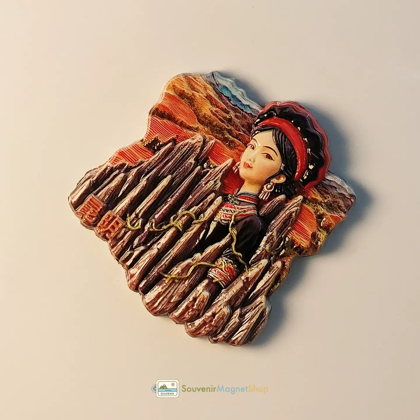 This charming souvenir magnet is perfect for adorning fridges, office whiteboards, or any magnetic surface, serving as a delightful reminder of China’s natural beauty and ethnic diversity for travelers and collectors alike.