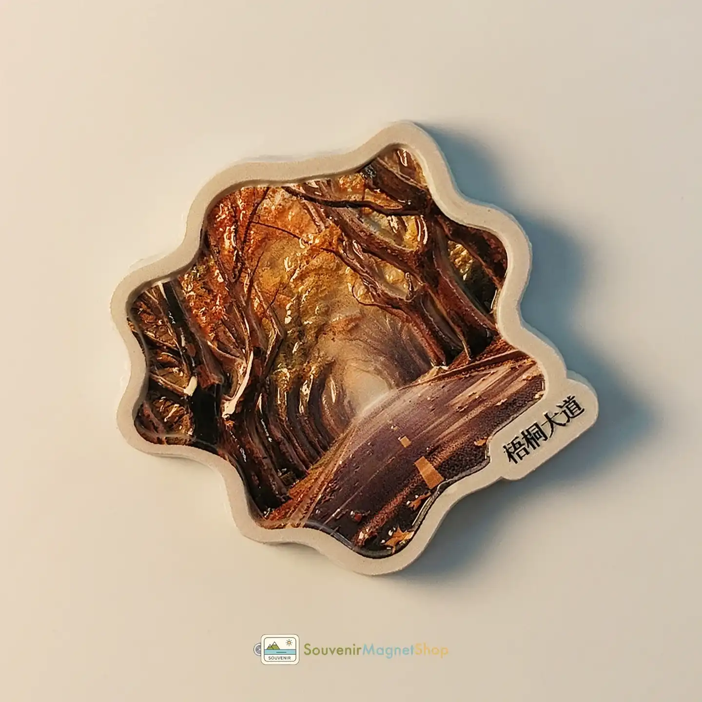 The 3D resin craftsmanship of this fridge magnet beautifully captures Nanjing’s iconic Wutong Avenue, showcasing a stunning autumnal scene where sycamore trees with their golden-brown leaves form a majestic tunnel over the road.