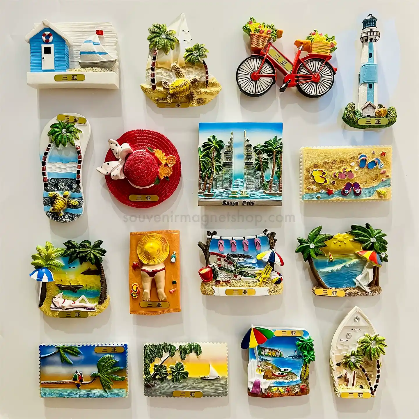 Capture the tropical vibes of Sanya, China with this 3D resin fridge magnet set. Hand-painted with specialty beach scenes, it’s a perfect travel souvenir.