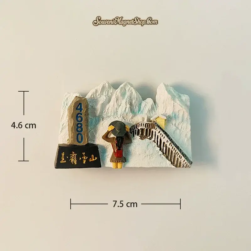 This exquisitely hand-painted fridge magnet perfectly encapsulates the majestic beauty of Jade Dragon Snow Mountain. Featuring the prominent 4680m altitude marker and a detailed depiction of its snow-capped peaks and winding pathways, it brings the thrill of the ascent and the serene mountain vista right into your home.