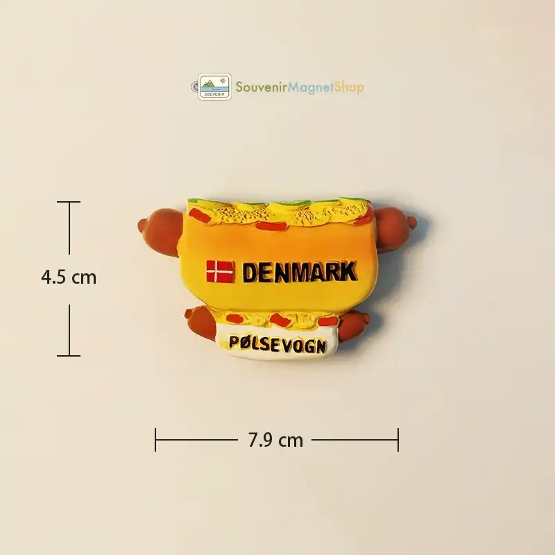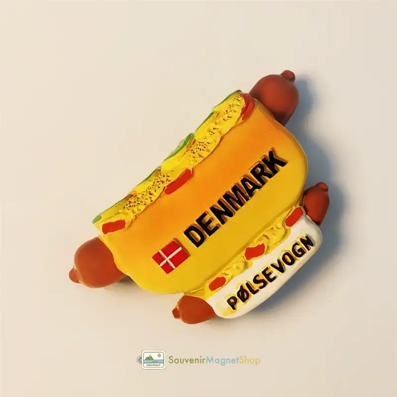 Savor a taste of Denmark with this fun Danish Hot Dog (Pølsevogn) fridge magnet! A vibrant 3D resin souvenir, perfect for travelers and food lovers.