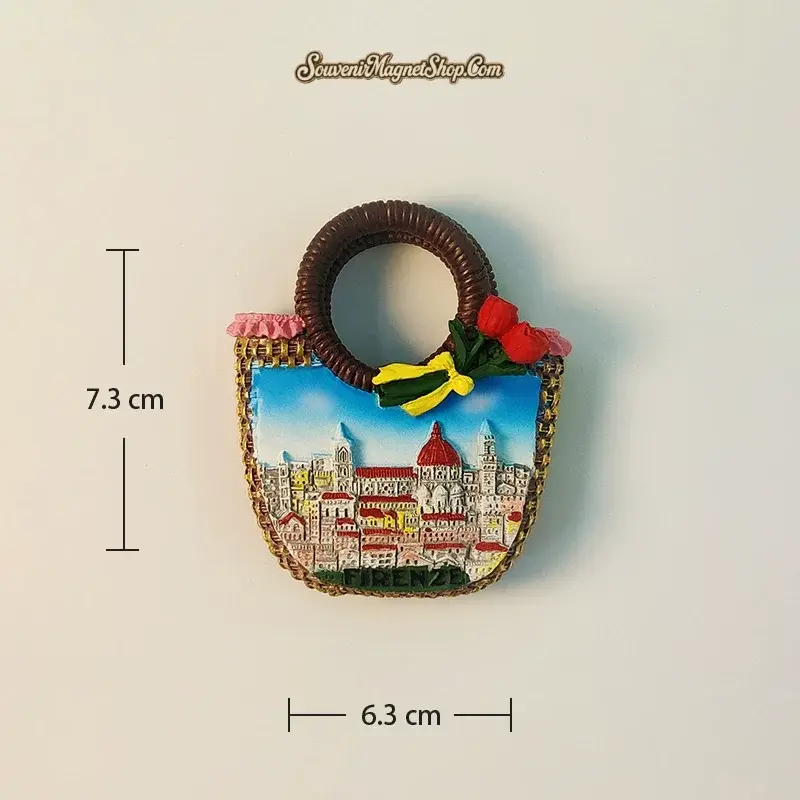 This unique Florence fridge magnet is creatively designed as an adorable, three-dimensional handbag, beautifully encapsulating the city’s picturesque skyline.