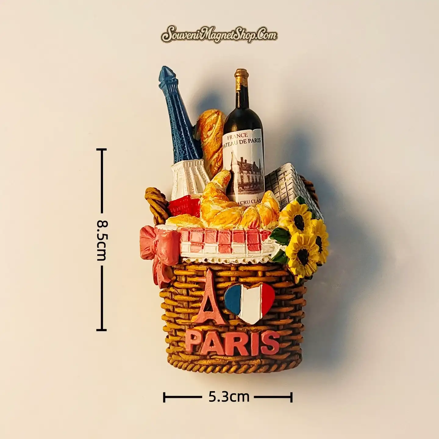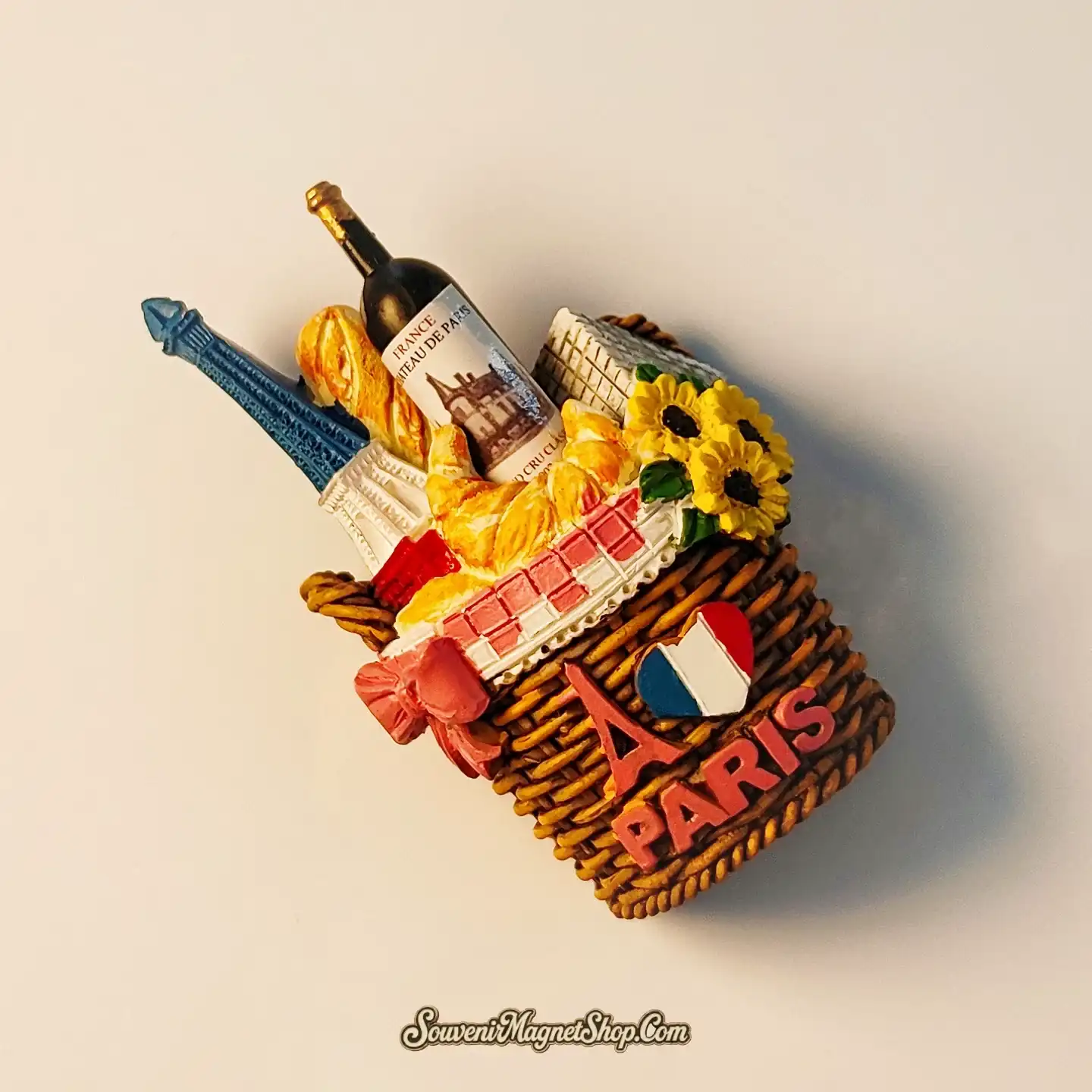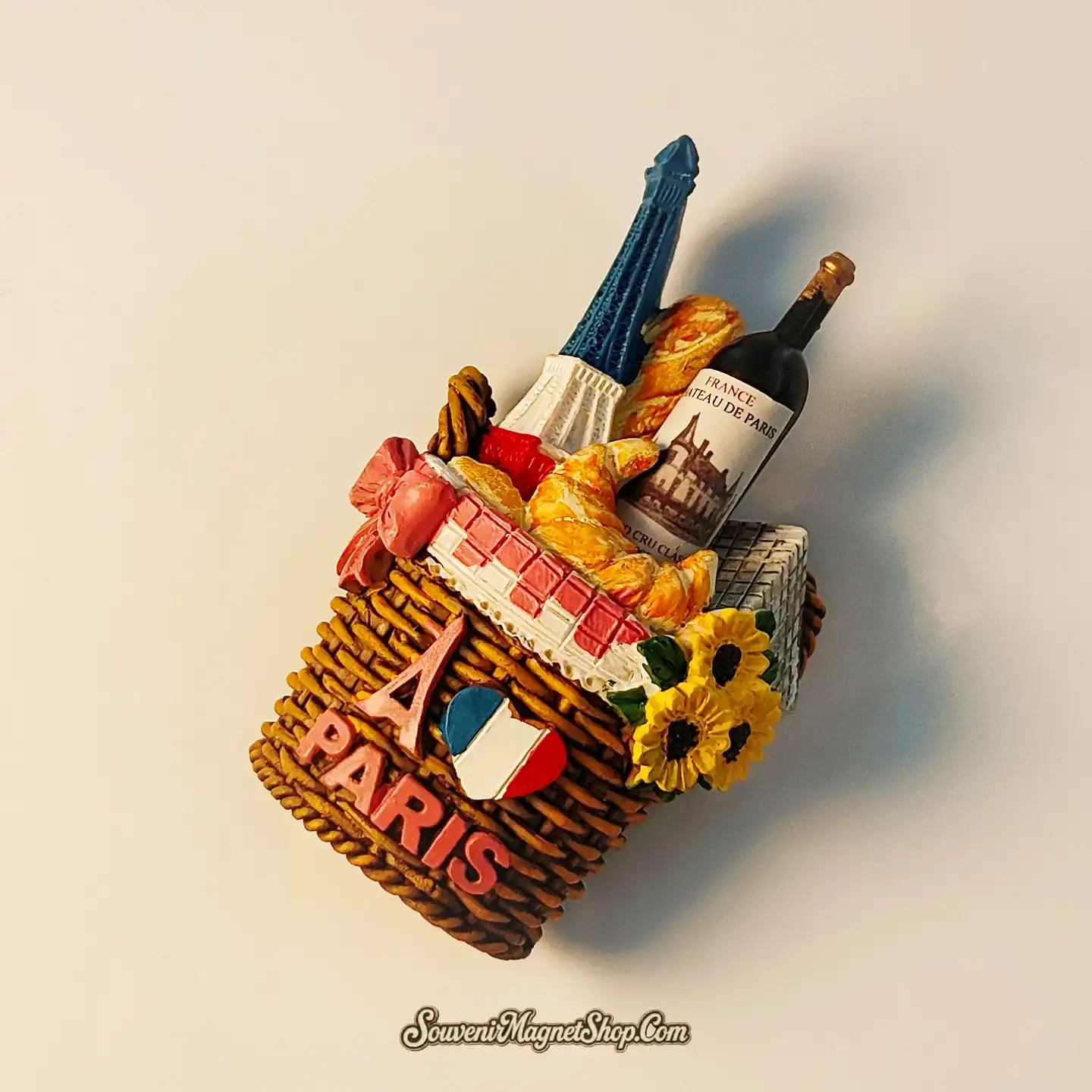 France Paris Parisian Picnic Basket Eiffel Tower Magnet – Wine Baguette Croissant Sunflowers