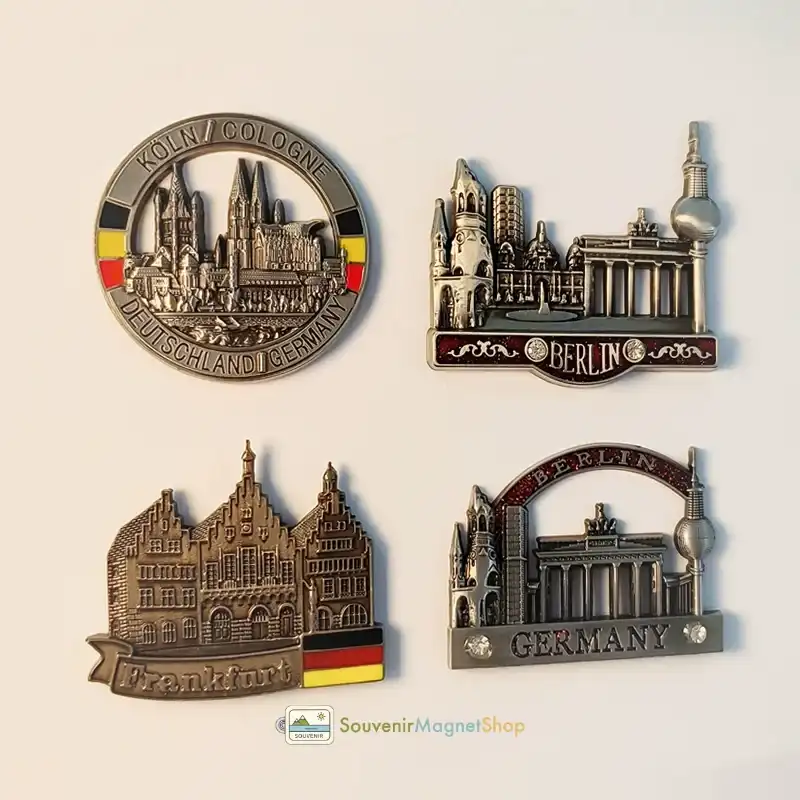 This souvenir collection proudly showcases three of its most iconic cities: the majestic Cologne, the historic Berlin, and the bustling financial hub of Frankfurt.