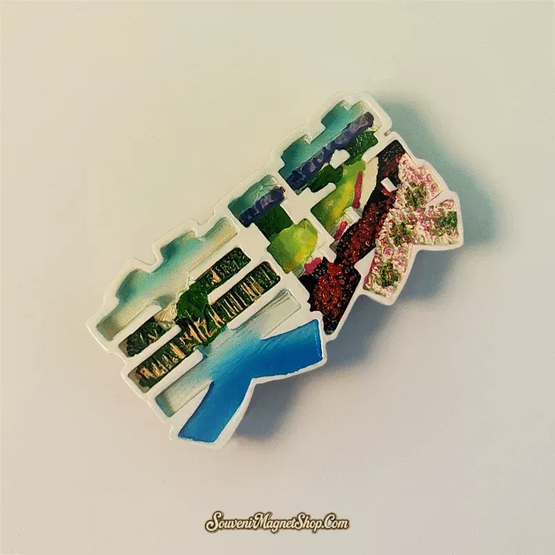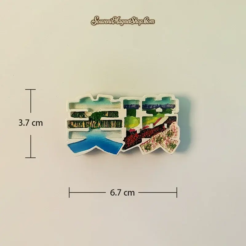 This exquisite souvenir magnet beautifully captures the essence of Biei, with the characters ‘美瑛’ ingeniously shaped to showcase its iconic flower fields and scenic landscapes.