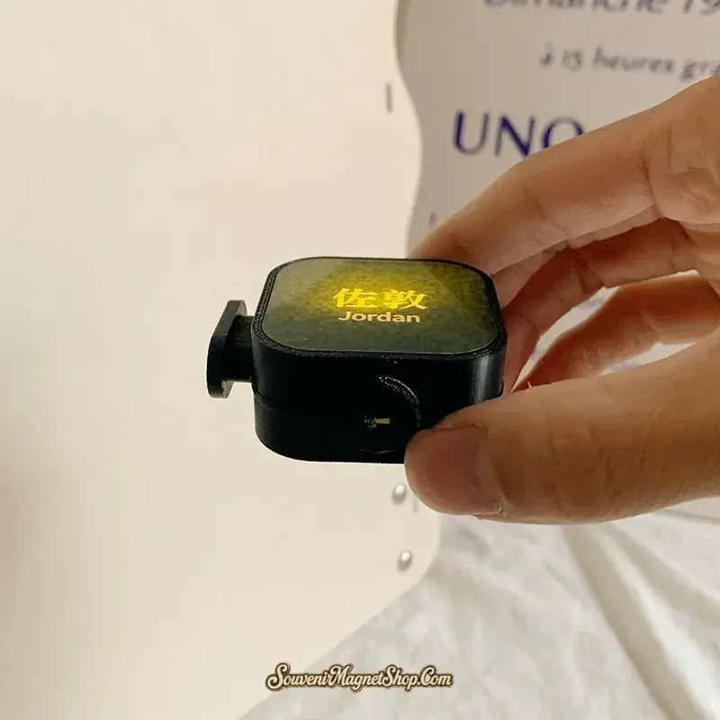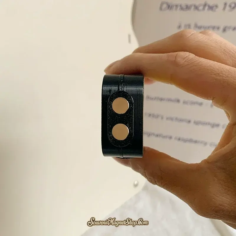 The black casing houses two sturdy embedded metal magnets on the back, and a side button to control the light. At 5.1 × 4.6cm with a 2cm depth, it’s compact and solid.