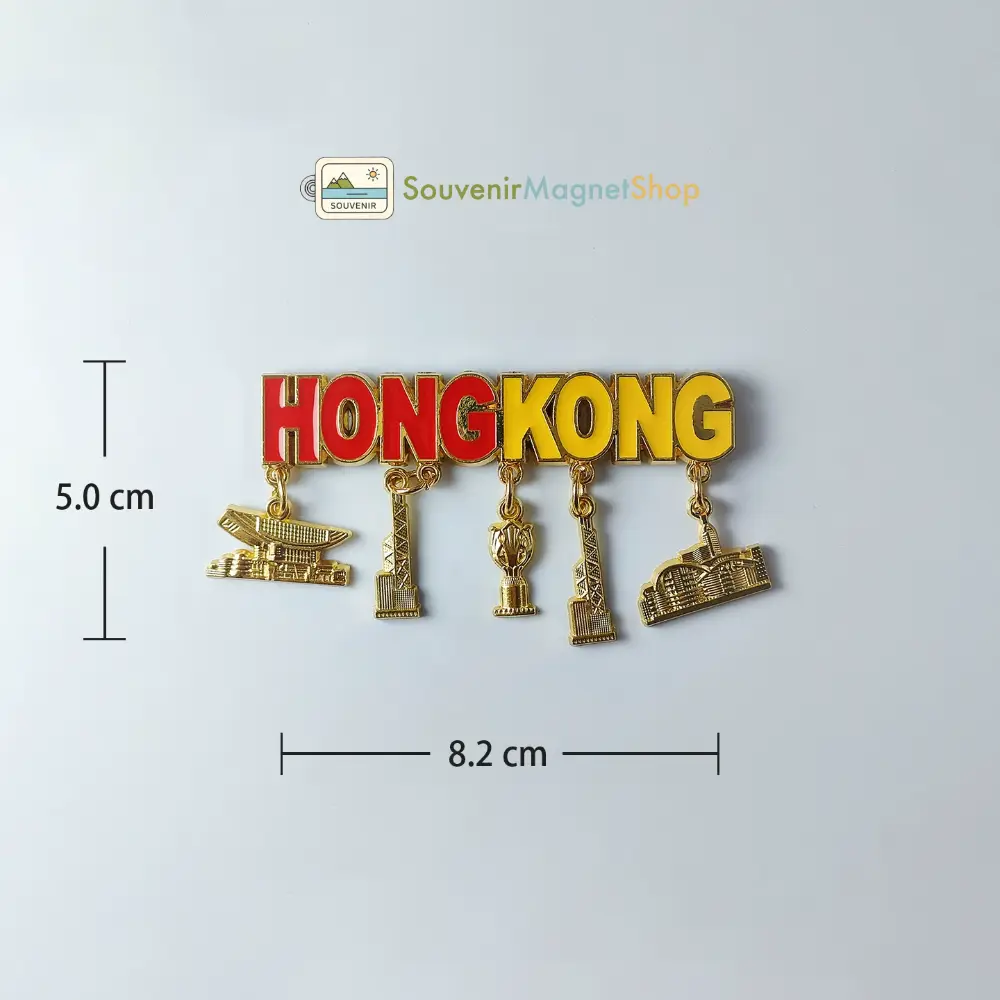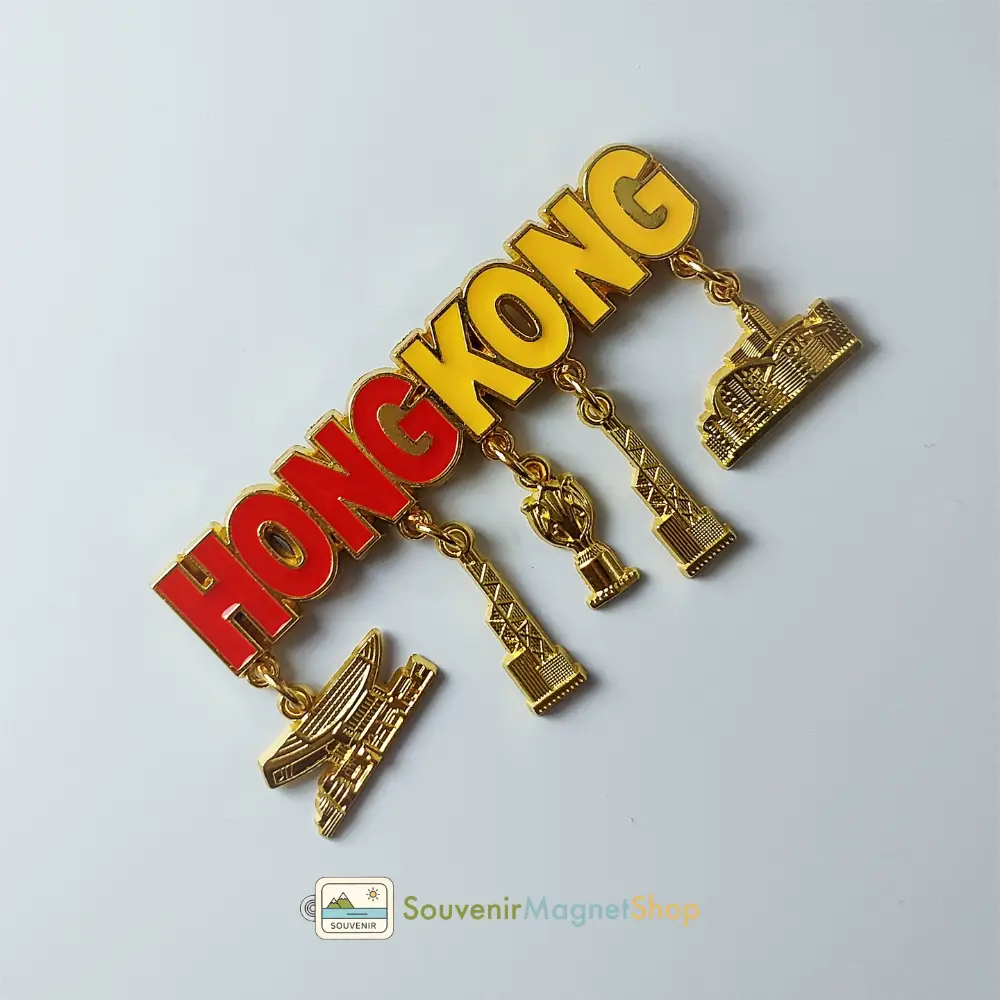 This creative 3D zinc alloy fridge magnet presents the bold “HONG KONG” lettering, with miniature iconic buildings hanging beneath—showcasing landmarks that symbolize the city’s unique skyline and cultural charm. The metallic finish and fine craftsmanship make it both durable and eye-catching.