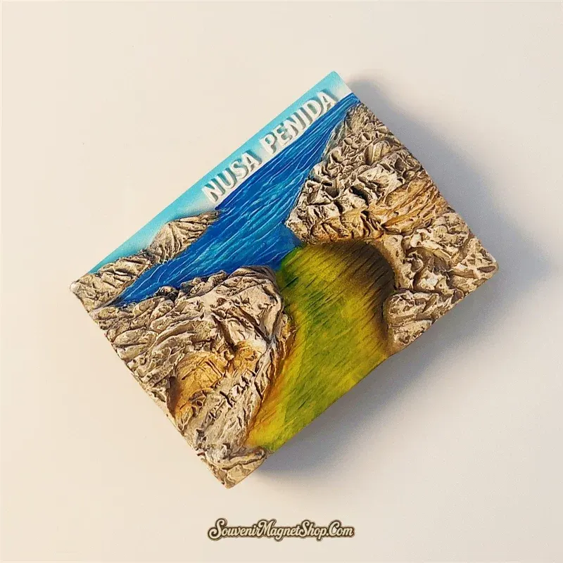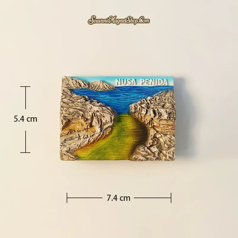 This exquisitely hand-painted souvenir magnet vividly captures the majestic beauty of Angel’s Billabong. Featuring the iconic natural pool with its vivid blue waters and the distinctive green path leading through rugged, sun-baked cliffs, the design perfectly encapsulates the essence of this famous Nusa Penida landmark.