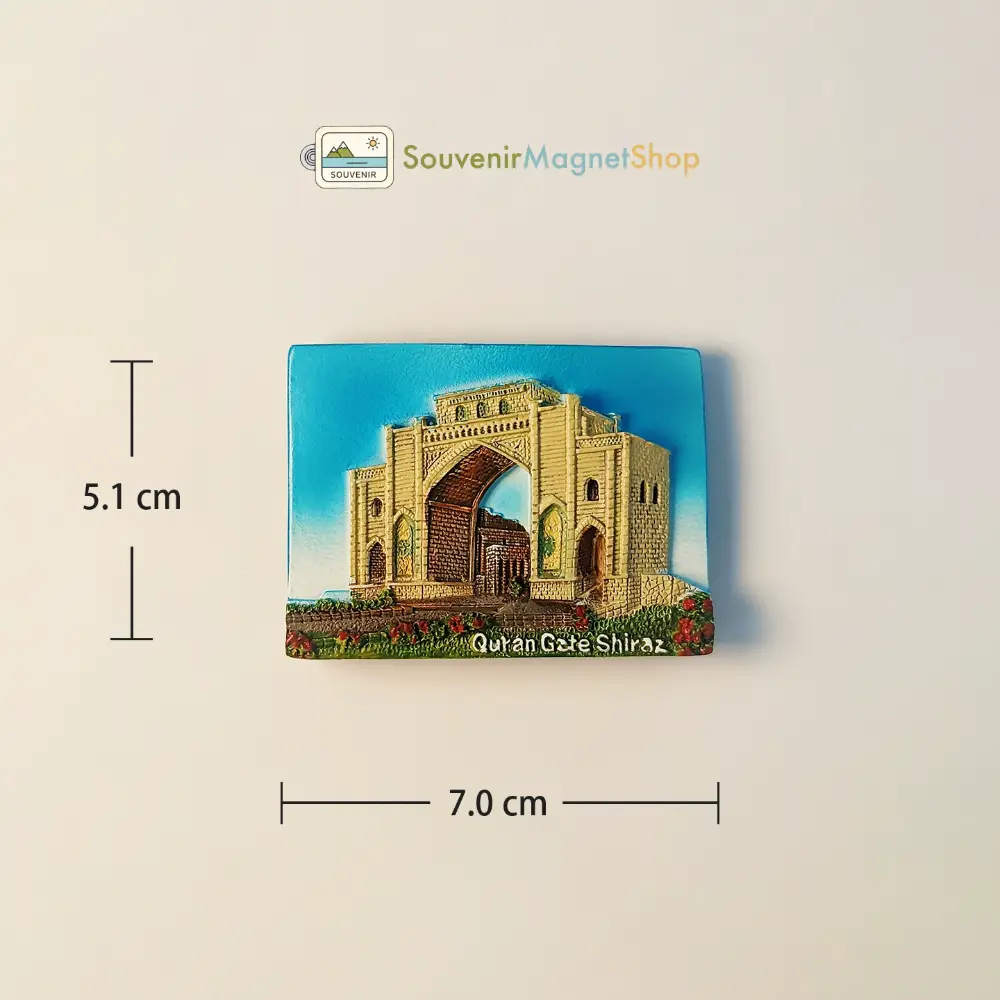 Discover the beauty of Iran with this intricately designed Shiraz Quran Gate fridge magnet. A perfect souvenir to remember your travels or a unique gift. Durable and vibrant.