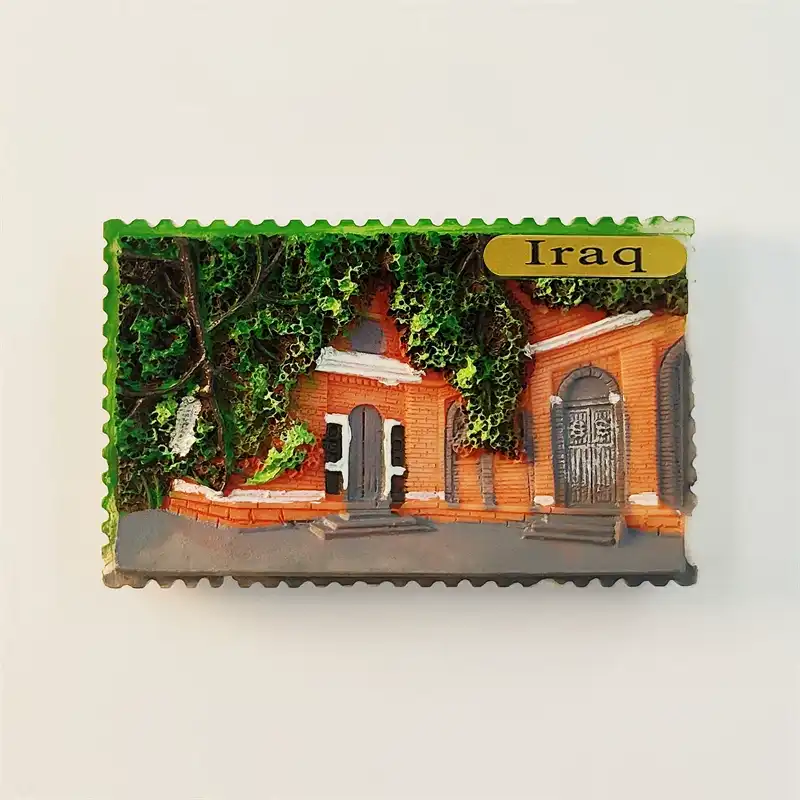 Hand-Painted Stamp-Shaped Iraq Fridge Magnet — 3D Architectural Travel Souvenir