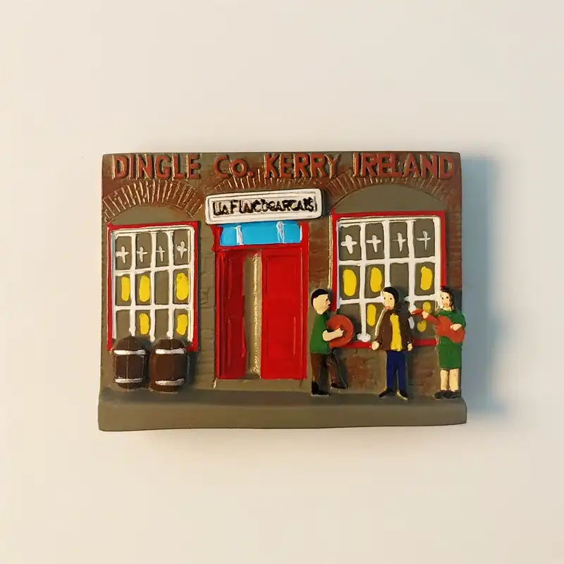 Capture the lively spirit of Ireland with this 3D resin Dingle pub magnet. A hand-painted souvenir from County Kerry, perfect for remembering Irish music and culture.