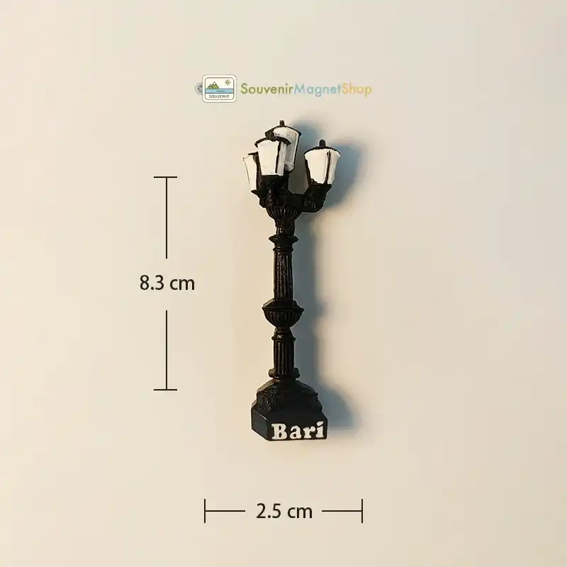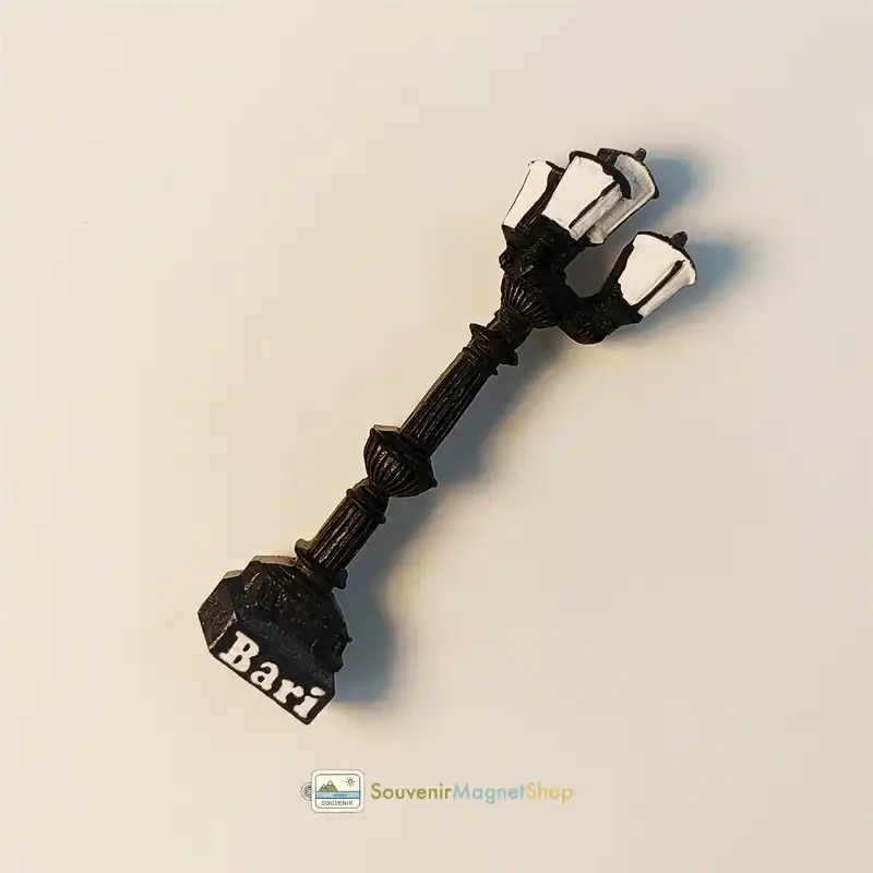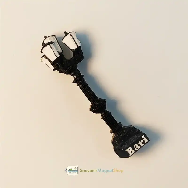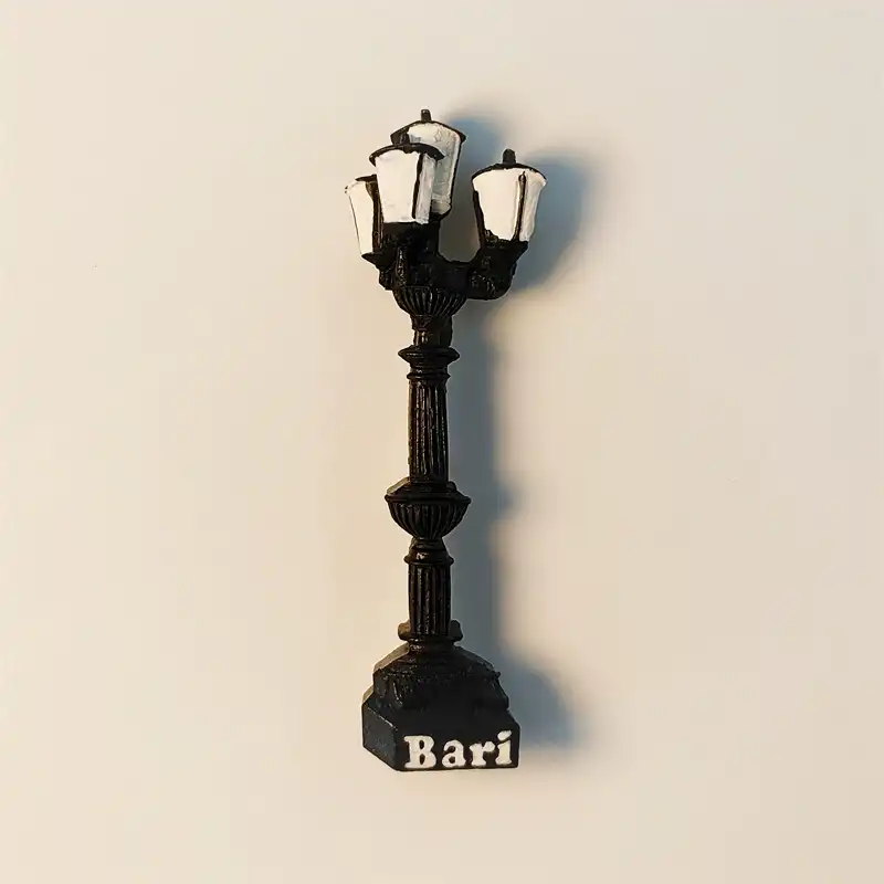 This meticulously crafted 3D resin fridge magnet captures the timeless elegance of a classic street lamp found in Bari, Italy.