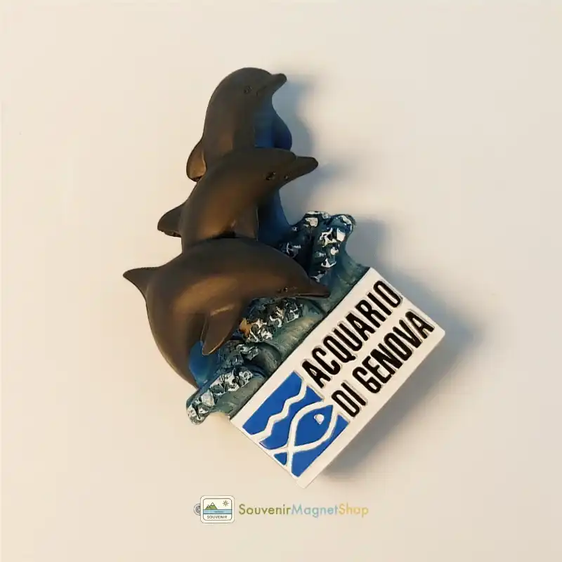 This Genoa aquarium dolphin show souvenir magnet beautifully encapsulates the excitement and marine wonder of the famous institution.