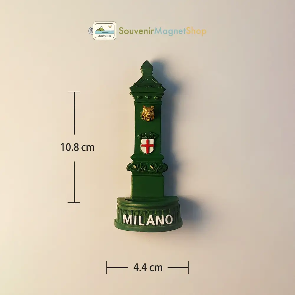 This souvenir fridge magnet features a detailed 3D resin design of a Milan lion-head fountain, complete with hand-painted textures that highlight the lifelike stone appearance. The artistic craftsmanship captures the timeless charm of Milan’s historic landmarks.