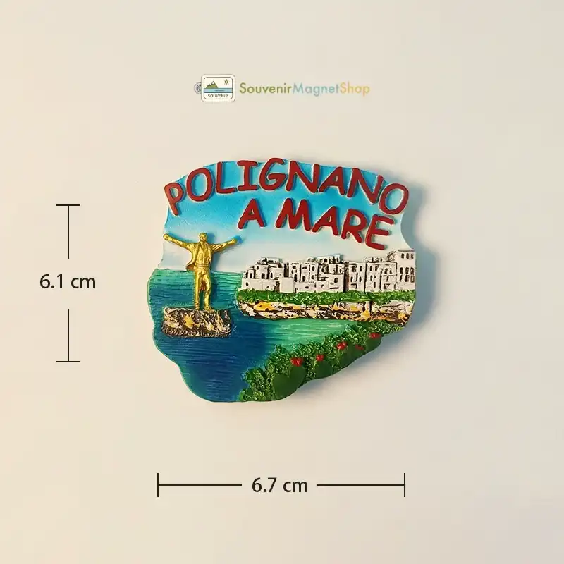 It’s a delightful way to commemorate a trip to Polignano a Mare, adding a touch of Italian coastal charm to any refrigerator, office, or magnetic display surface.