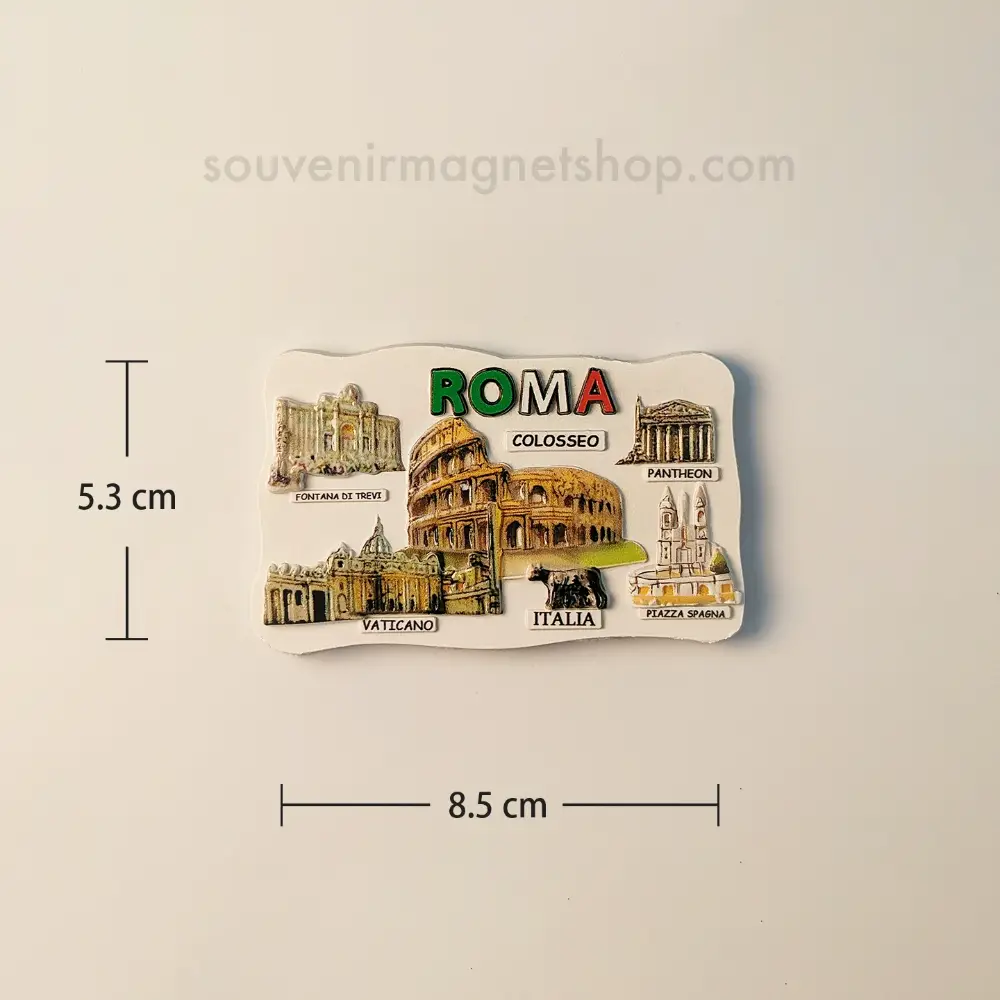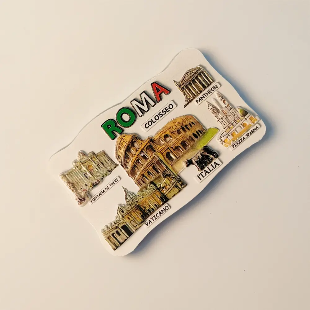 This souvenir fridge magnet features a creative 3D resin design of Rome’s iconic landmarks, including the Colosseum, Pantheon, and Vatican, with detailed hand-painted elements that vividly capture the grandeur and historical significance of the Eternal City.