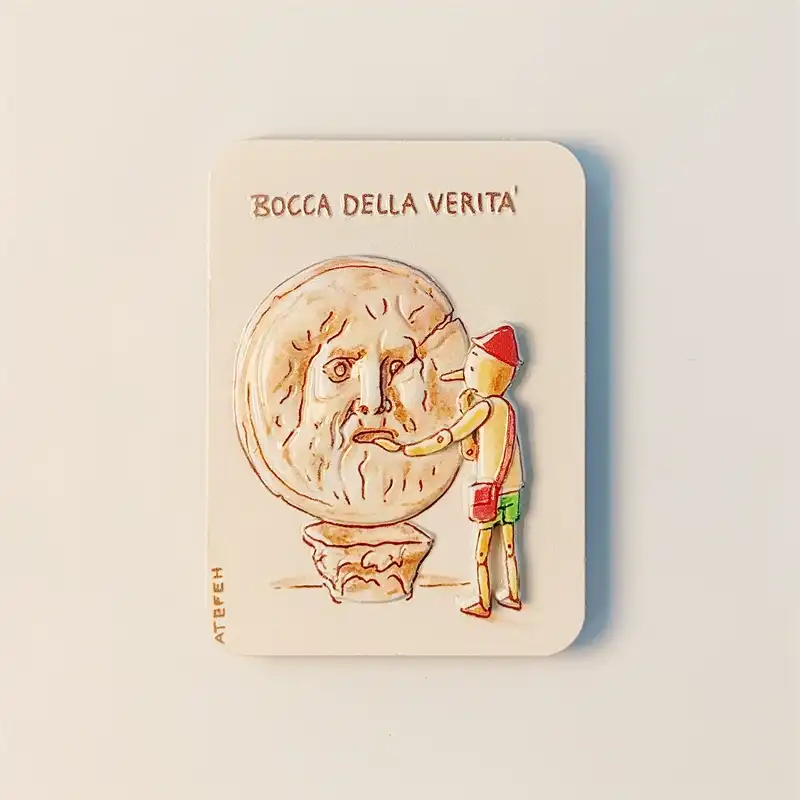 Capture Rome’s legend with this 3D resin Mouth of Truth (Bocca della Verità) fridge magnet. A hand-painted souvenir perfect for travelers and collectors.