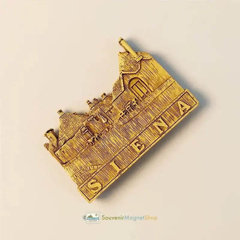 Intricate Siena fridge magnet featuring detailed 3D vintage architecture, showcasing charming rooftops and textured facades, capturing the ancient rustic feel of Siena’s historic structures.