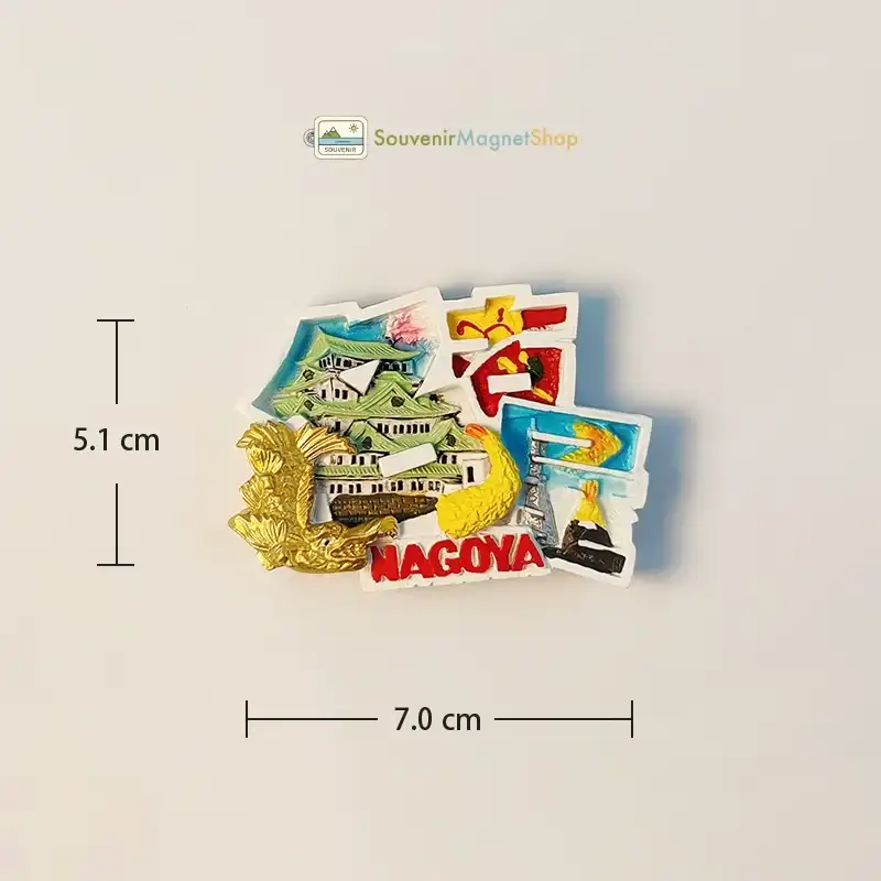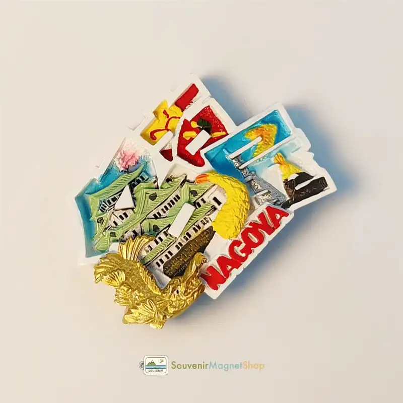 Capture your travels with this vibrant 3D resin Nagoya fridge magnet. Features hand-painted details of Nagoya Castle and the TV Tower, a perfect Japan travel souvenir.