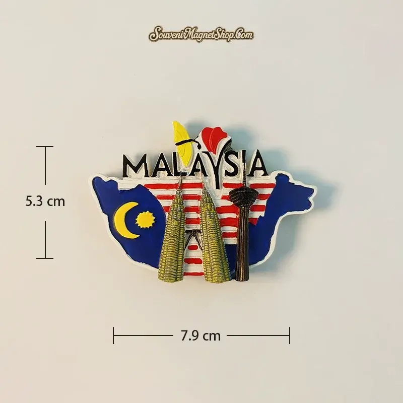 This magnet encapsulates the spirit of Malaysia, featuring its proud national flag alongside these iconic landmarks, representing a nation renowned for its diverse landscapes, warm hospitality, and rapid development.