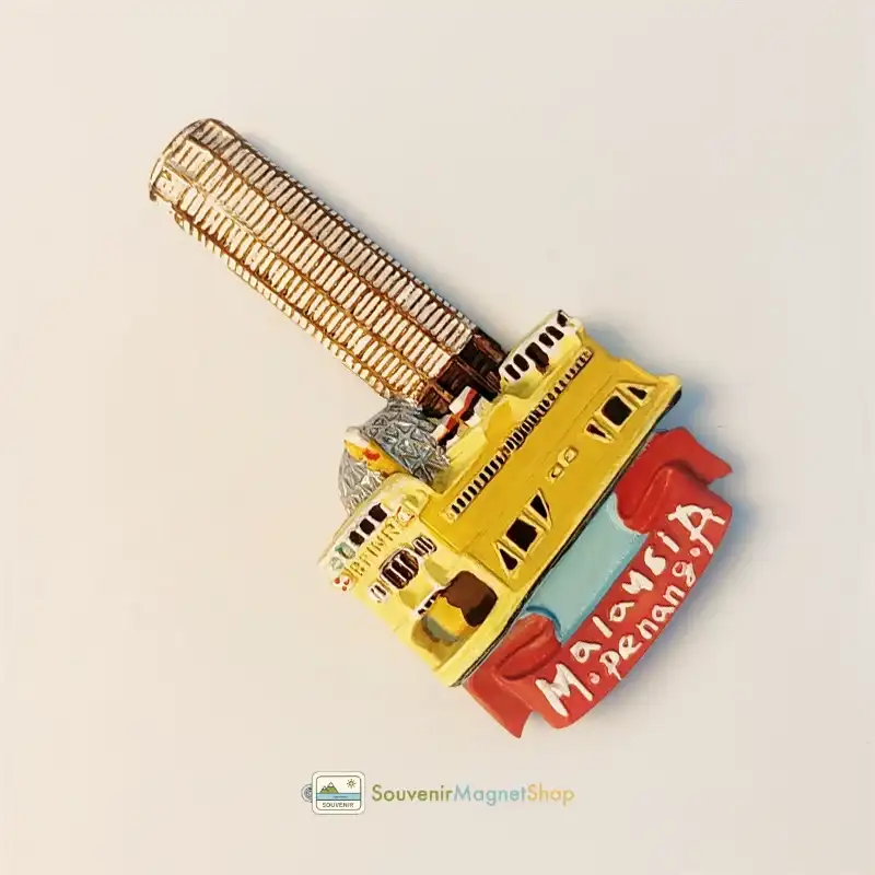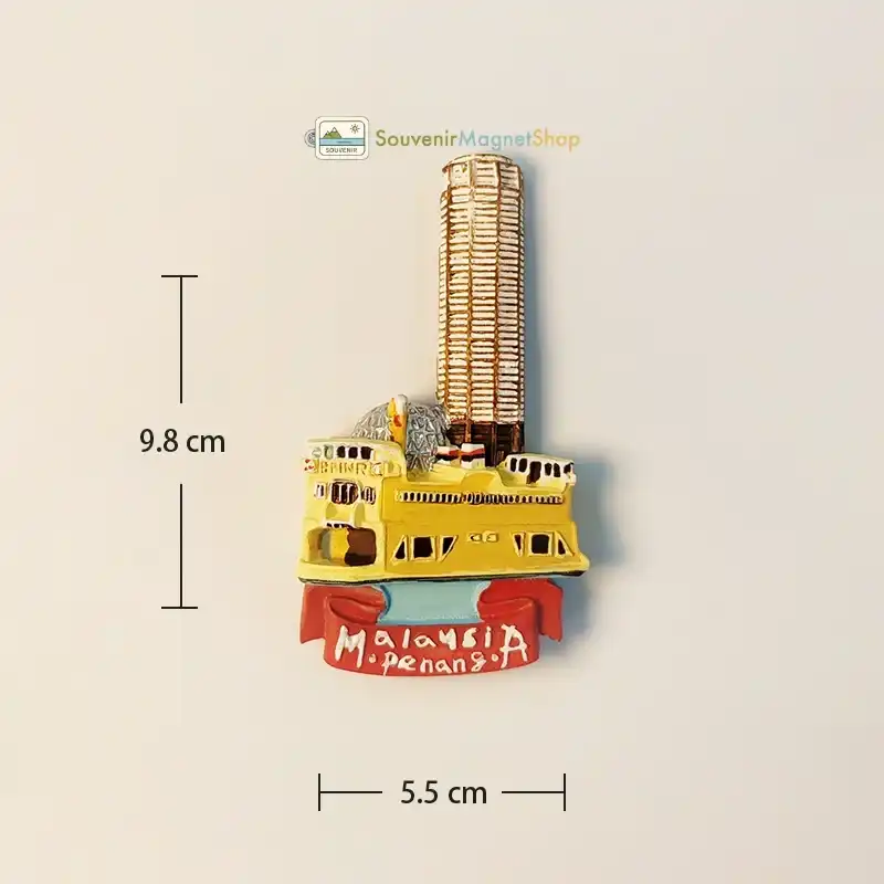 Capture your travels with this 3D resin fridge magnet of Penang’s KOMTAR Tower. A hand-painted, detailed souvenir from Malaysia, perfect for collectors.