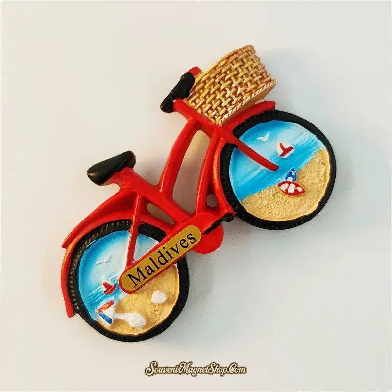 Hand-Painted 3D Maldives Beach Bicycle Souvenir Magnet — Tropical Ocean Scenes in Every Wheel