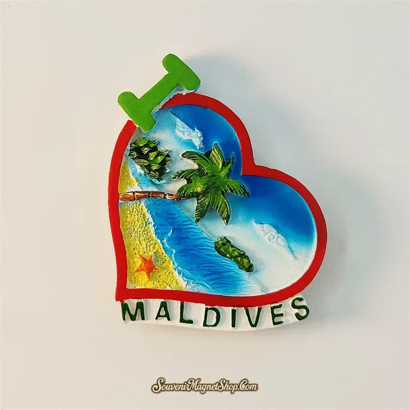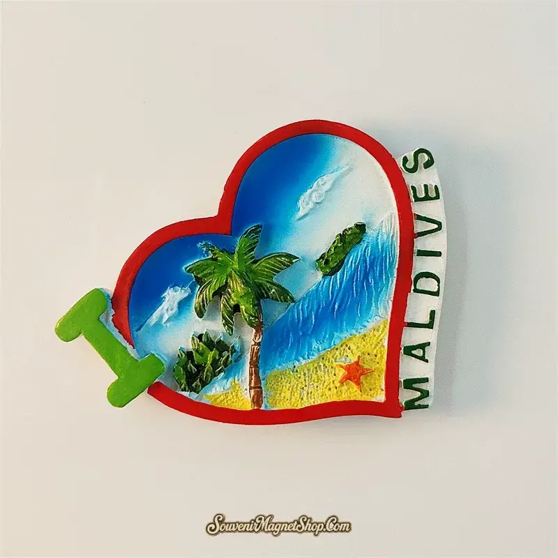 A 3D Maldives Heart-Shaped Souvenir Fridge Magnet That Captures the Romance of the Ocean