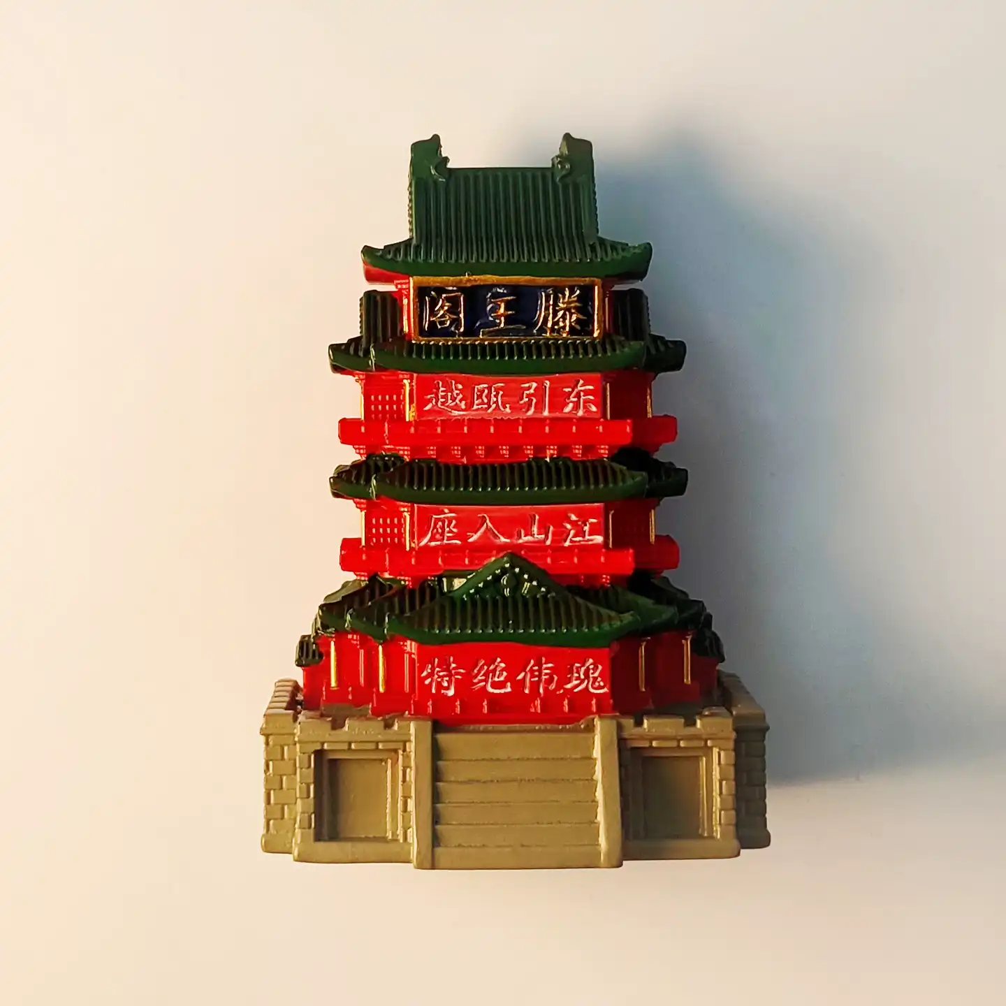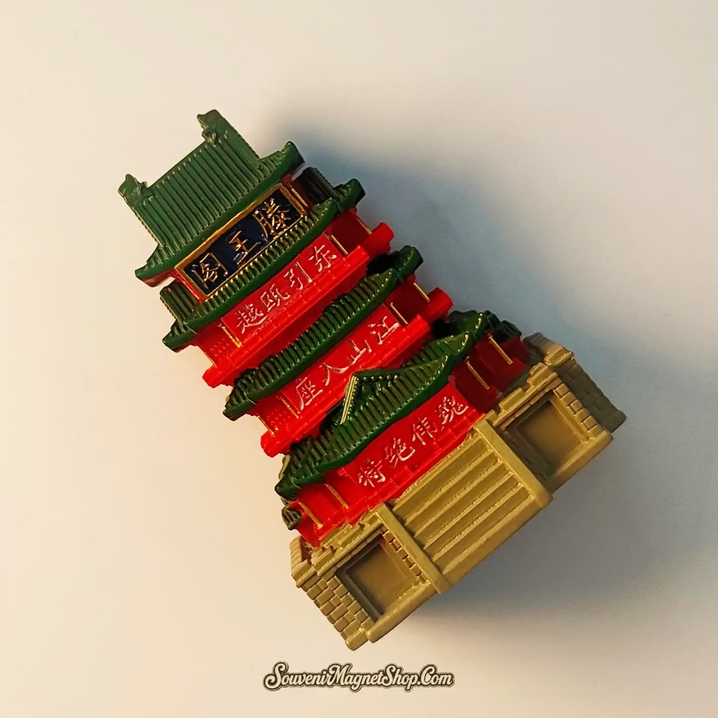 This exquisite fridge magnet beautifully captures the iconic multi-tiered design and vibrant red-and-green palette of the Tengwang Pavilion.