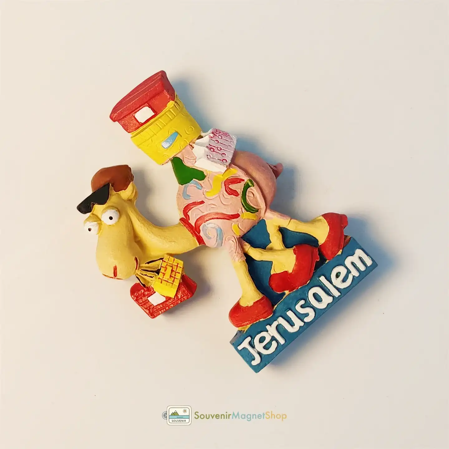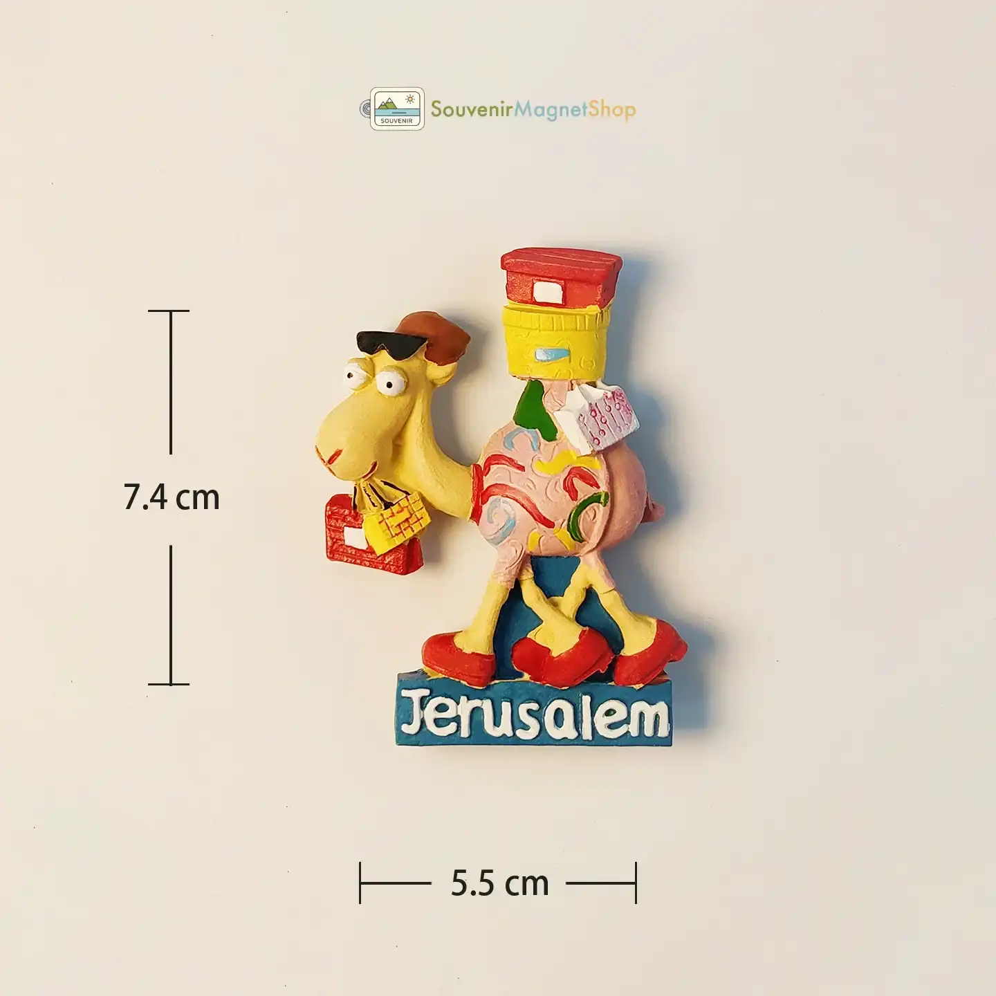Bring home a piece of Palestine with this vibrant 3D painted Jerusalem creative camel fridge magnet. A unique travel souvenir and decorative item for your fridge, celebrating your journey to the Holy Land.
