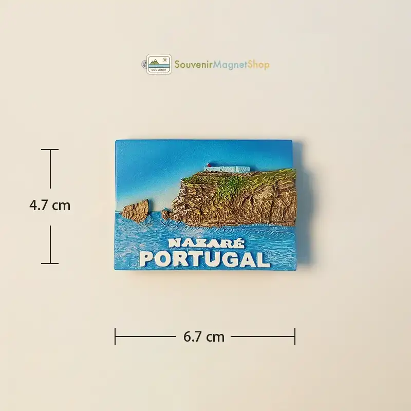 Capture the stunning beauty of Nazaré, Portugal with this 3D resin fridge magnet. Features hand-painted coastal cliffside scenery, a perfect travel souvenir.