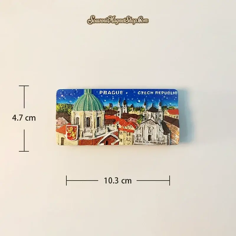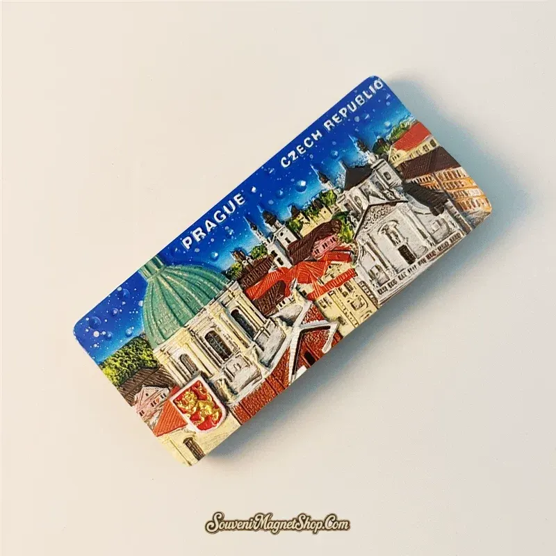 This creative fridge magnet brings that magic to life with a stunning 3D relief design. It features a hand-painted ‘Starry Night’ backdrop that arches over the meticulously detailed rooftops and the prominent green-domed cathedrals of the Mala Strana district.