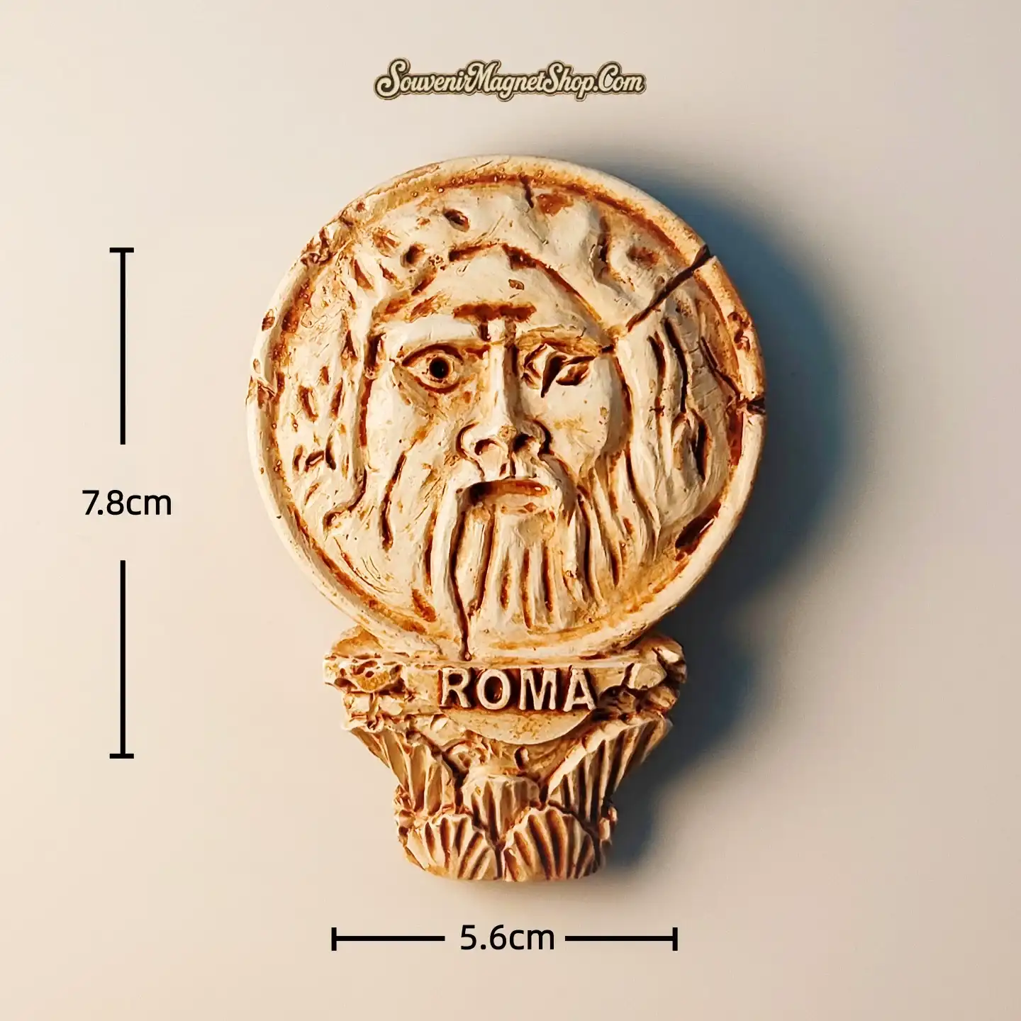 This exquisite Rome Mouth of Truth souvenir fridge magnet captures the weathered, mysterious charm of the original artifact with a creative vintage distressed style.