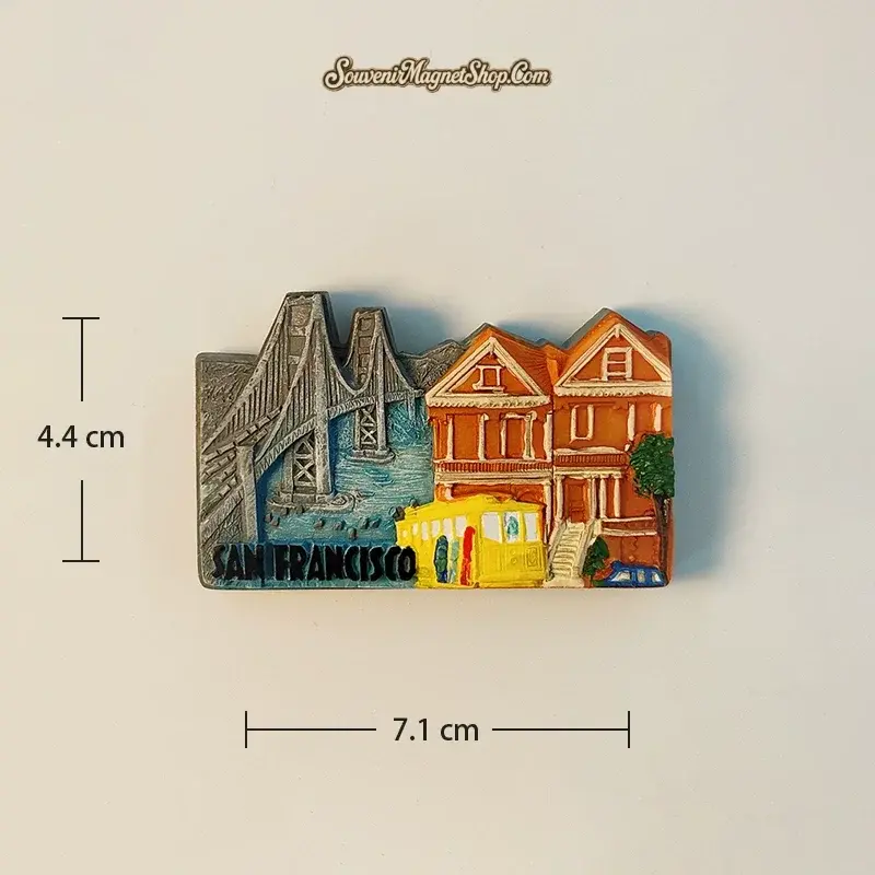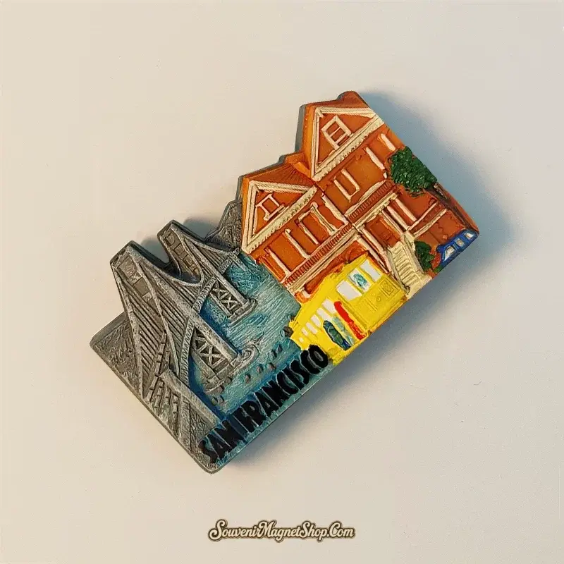 A Detailed San Francisco Souvenir Magnet with 3D Sculpted Landmark Design