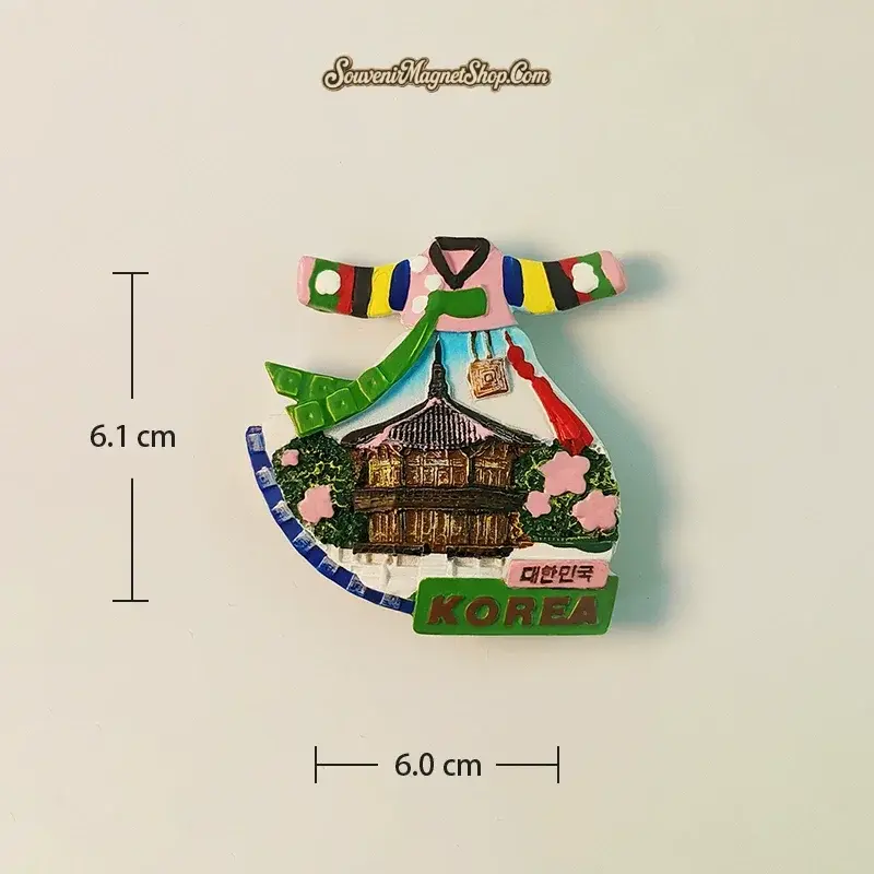 The magnet’s vibrant colors echo the festive hues of a real Hanbok, making it a truly eye-catching piece.