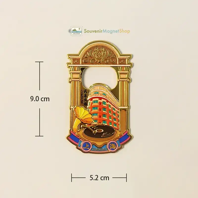 Exquisite Zinc Alloy Wukang Building fridge magnet, hand-painted details capturing Shanghai’s iconic architecture, gramophone, A unique souvenir and handy bottle opener.
