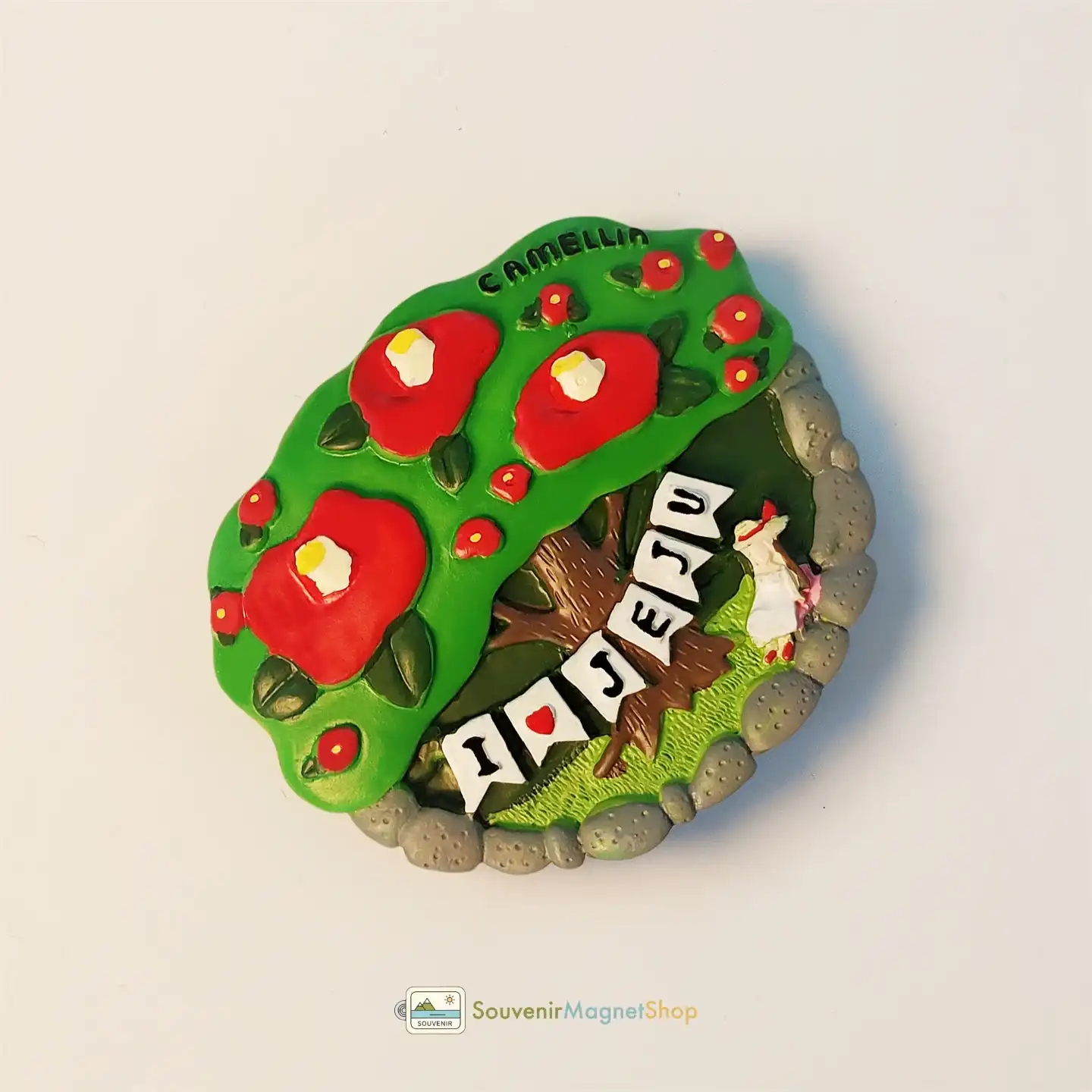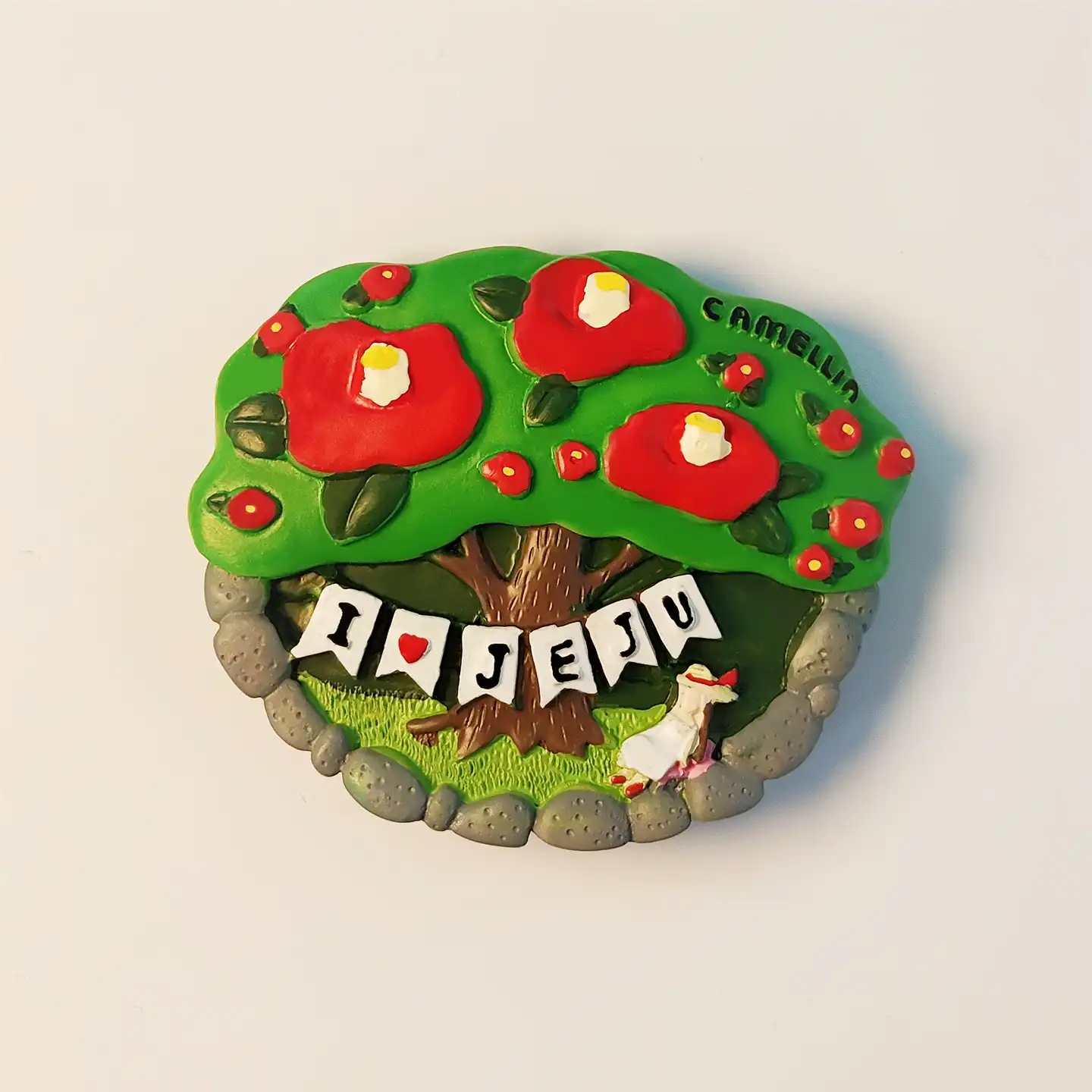 Celebrate Jeju Island’s beauty with this vibrant 3D resin camellia flower fridge magnet. A perfect South Korea souvenir or charming decoration for any magnetic surface.