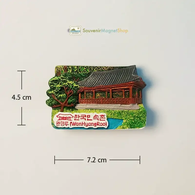 This fridge magnet is crafted from durable 3D resin and meticulously hand-painted to capture the essence of WanHyangRoo (완향루) Pavilion.