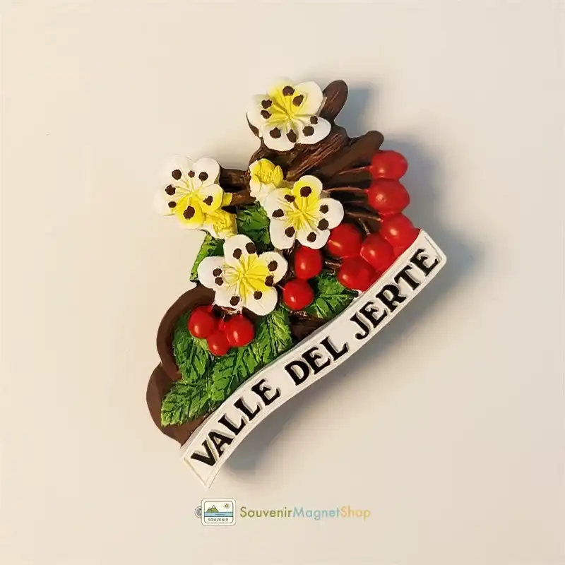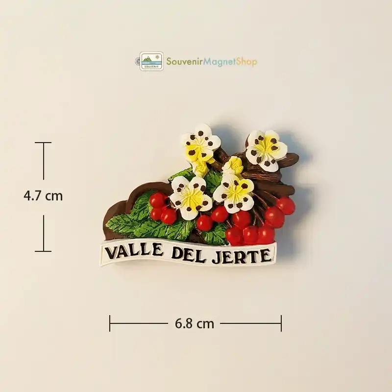 This exquisite 3D resin fridge magnet captures the essence of the Valle del Jerte’s famed cherry blossoms.