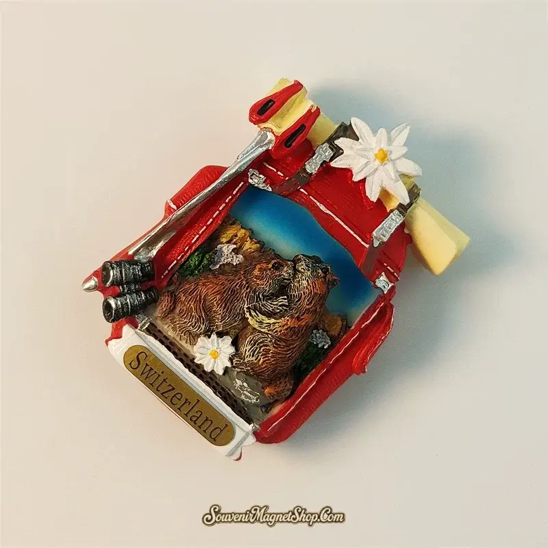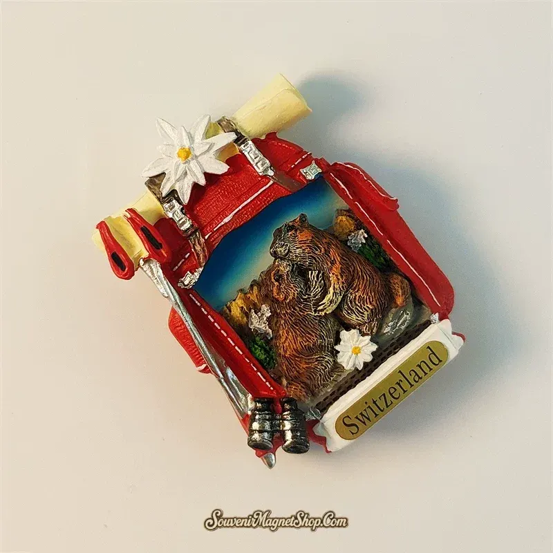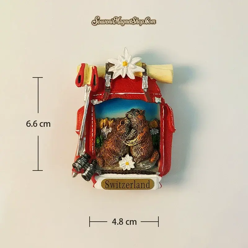 This exquisite 3D hand-painted fridge magnet masterfully captures the essence of the Swiss Alps adventure.