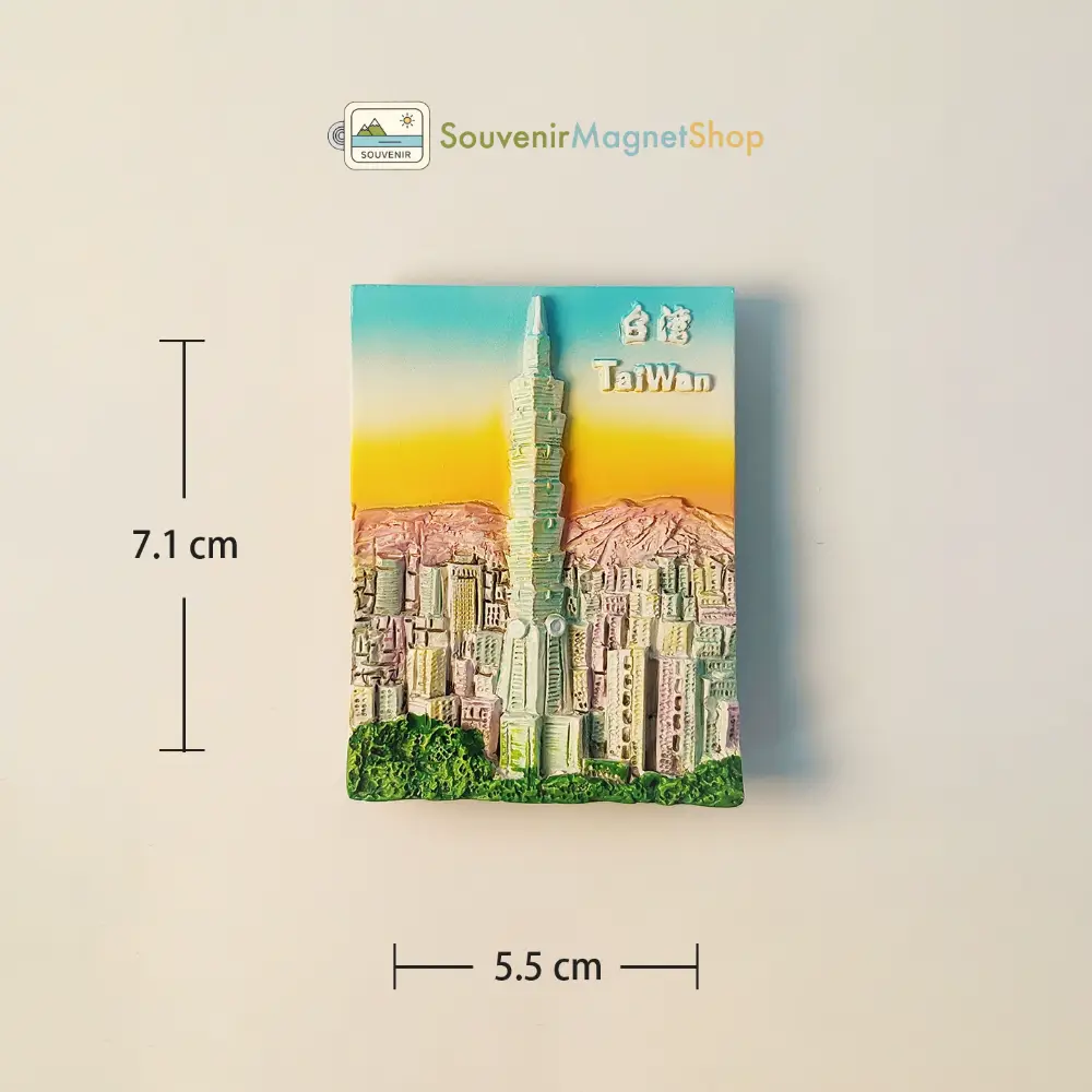 Capture the spirit of Taiwan with this vibrant Taipei 101 fridge magnet. A perfect travel souvenir featuring the iconic landmark.