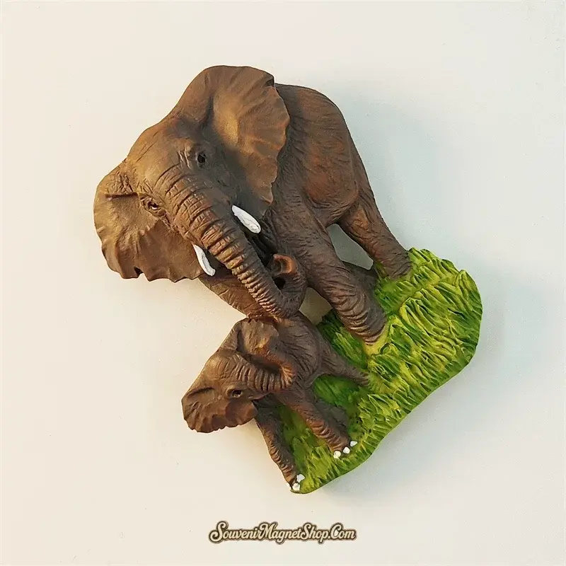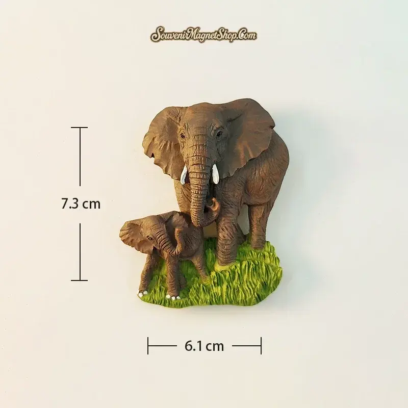 The naturalistic brown color palette and lifelike proportions make this magnet feel like a miniature wildlife sculpture rather than a simple souvenir. Whether you display it as a travel keepsake from Thailand, gift it to an animal lover, or add it to a global magnet collection, this elephant mother-and-baby magnet is a heartwarming tribute to one of nature’s most touching family bonds.