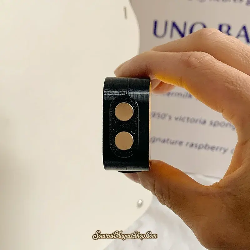 At 5.1cm wide and 4.6cm tall with a 2cm depth, it has a satisfying chunky feel. Two strong magnetic dots on the back keep it firmly in place on any magnetic surface.