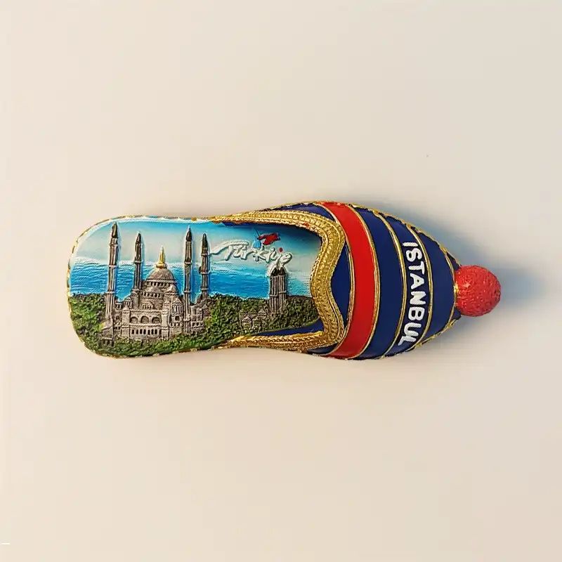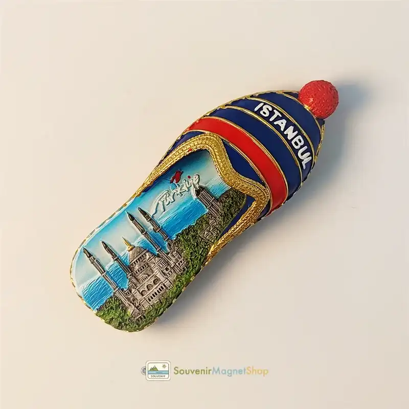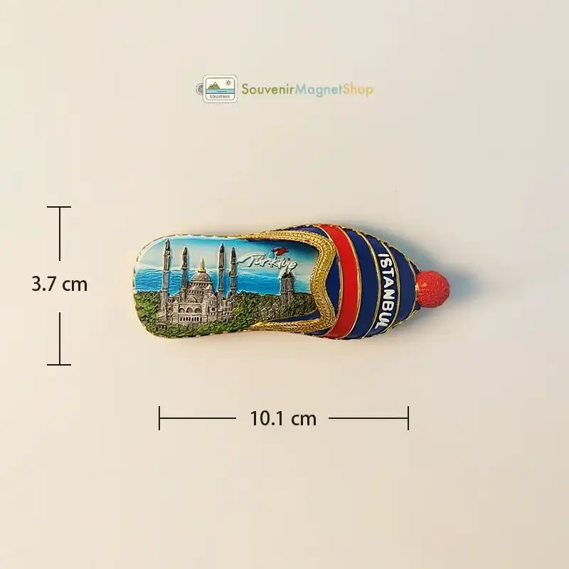 Capture your Istanbul memories with this unique 3D resin shoe-shaped fridge magnet. Hand-painted with a detailed Mosque scene, it’s a perfect Turkey travel souvenir.